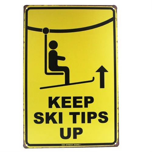 Гараж Декор "сохранить лыжный советы вверх" Живописный подъем Предупреждение жестяная вывеска Настенный декор на открытом воздухе