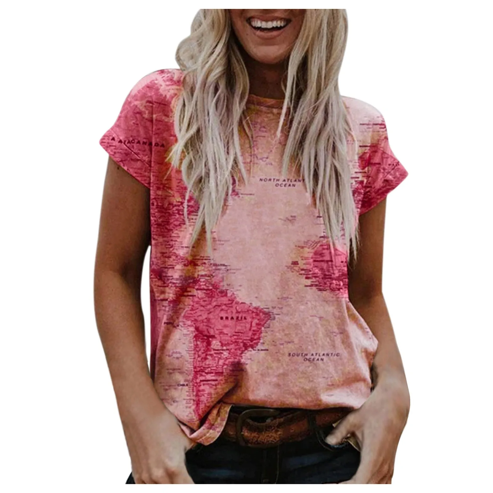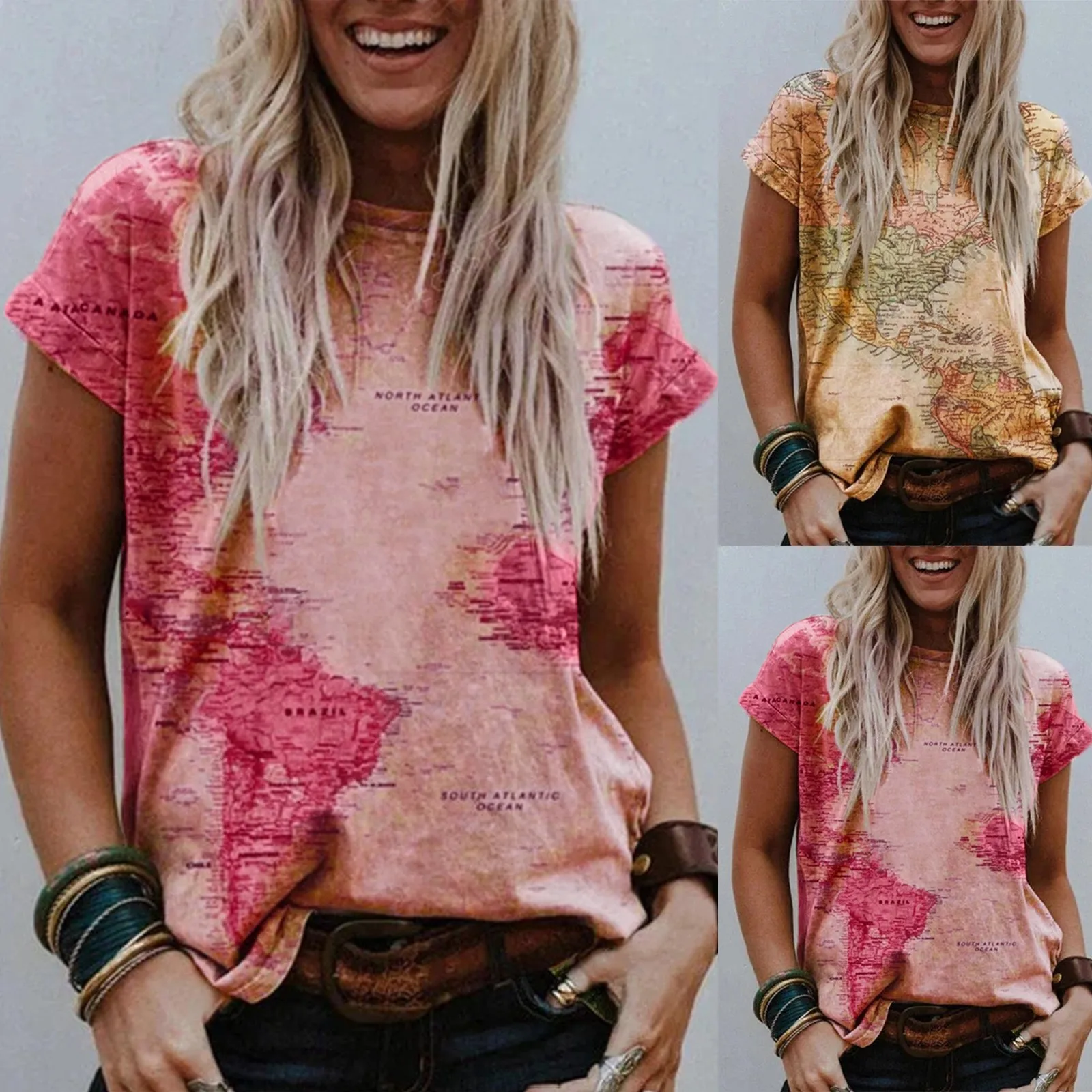 Женские винтажные футболки в стиле Харадзюку, топ с круглым вырезом и коротким рукавом, с принтом карты земли, футболка оверсайз, женская одежда