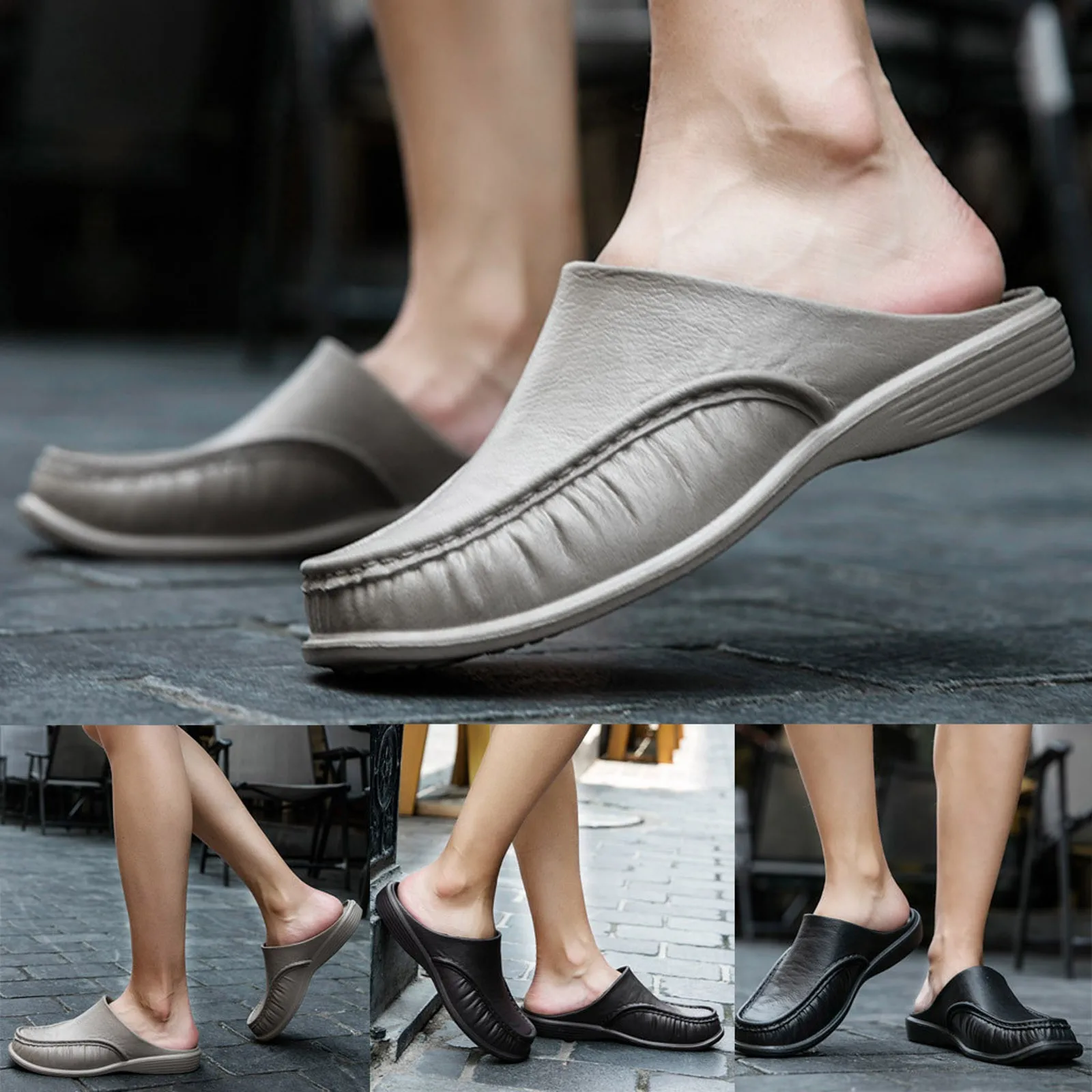 Тапки мужские домашние из натуральной кожи, однотонные черные Нескользящие, повседневная обувь, большие размеры