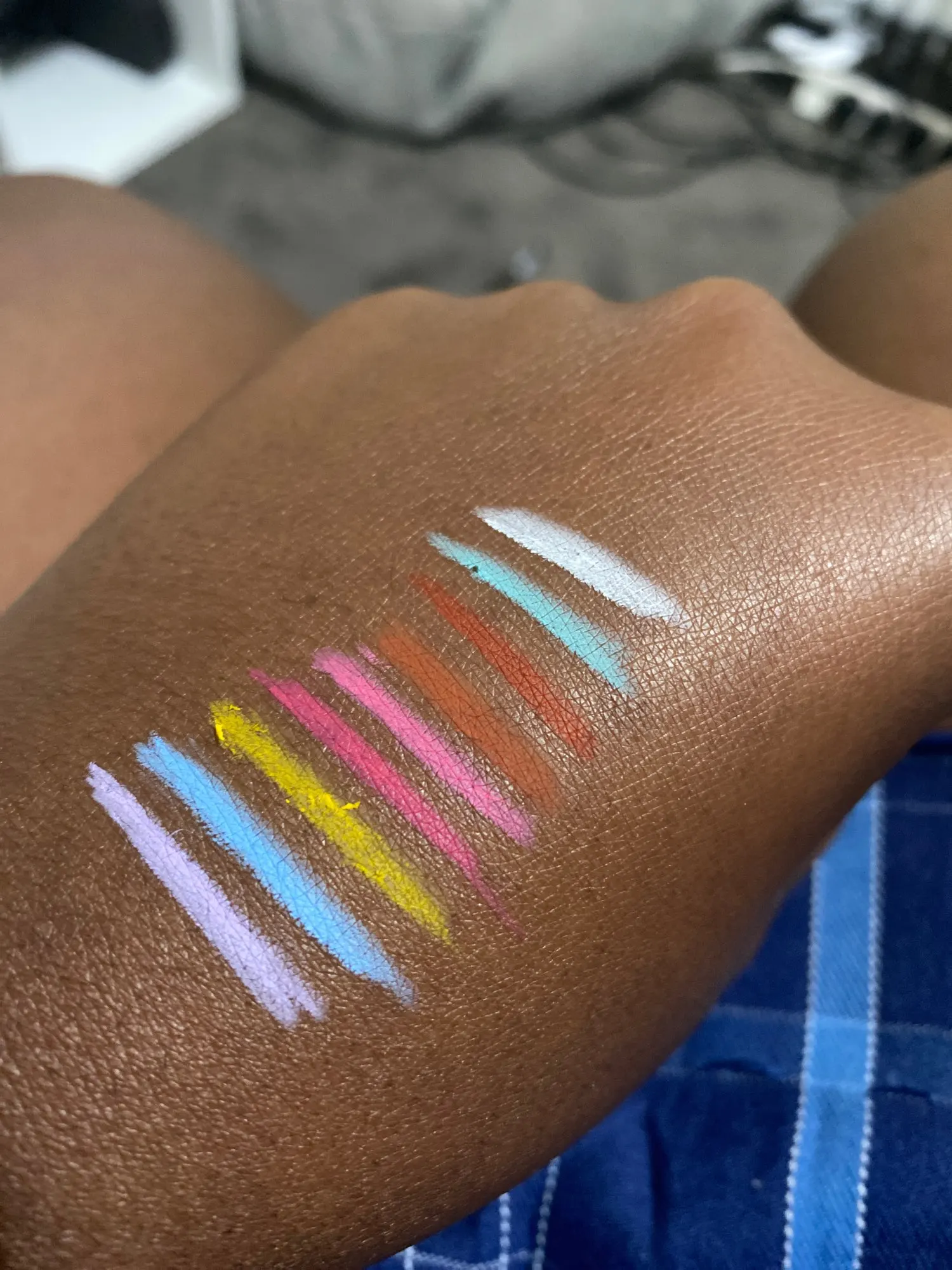 Я заказал несколько цветов, они все яркие и идеальные, Я испугалась, что буду слишком прозрачной на своей коже, но, к сожалению, все они очень непрозрачные (это копия и паста, Я не хотел писать что-то другое еще 7 раз, потому что я просматриваю сразу несколько люверсов)
