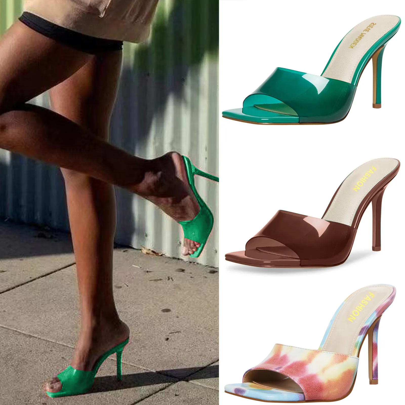 Женские модные однотонные прозрачные туфли на высоком каблуке с квадратным носком; Большие размеры