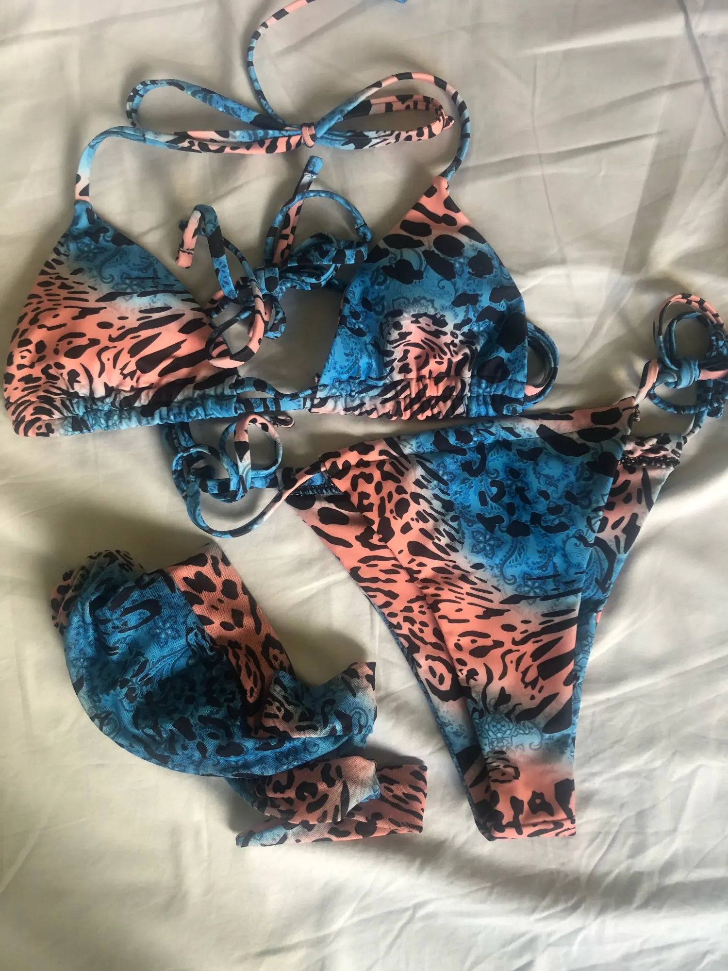 3 цвета, Бразильское бикини на шнуровке, Женская купальная одежда, ...