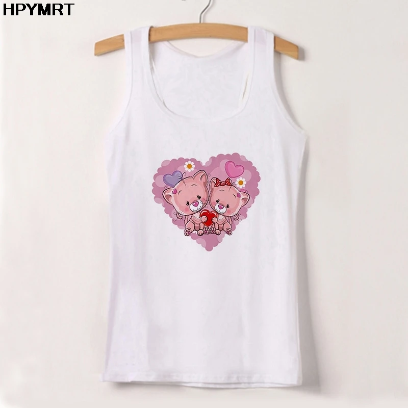 Новые летние майки, женская футболка с мультипликационным медведем, обнимающейся любовью, женская футболка, сексуальный Свободный жилет без рукавов, Ярко-белый