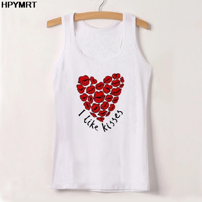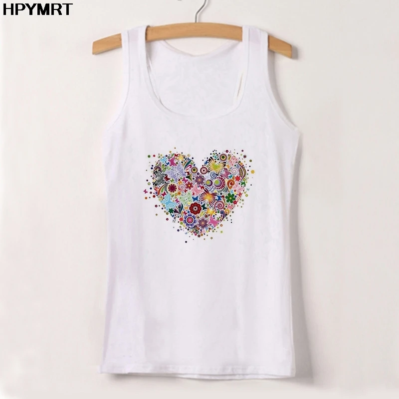 Майка женская с принтом love, пикантный белый Повседневный Свободны...