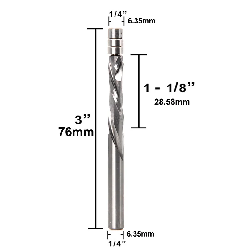 Твердосплавные сверла для слива значительно превосходят Стандартные сверла для слива и excel, где Стандартные сверла для слива отсутствуют, производящие чрезвычайно гладкие готовые поверхности на некоторых из самых требовательных материалов и применений. Твердосплавная конструкция позволяет сложную геометрию лезвия, а сварной стальной наконечник вмещает резьбовую гайку для удобства использования и надежности. Эти биты хорошо работают на всех видах древесины, включая фанеру, МДФ, твердые леса, пластиковые ламинаты и цветные металлы.Характеристики битМатериал: твердый карбидКоличество бит: 1Размер хвостовика: 1/4"Диаметр резки: 1/4"Длина резки: 1-1/8"Общая длина: 3"Самый большой диаметр: 1/2"Количество флейтов: 2Характеристики подшипникаНаружный диаметр подшипника: 1/4"