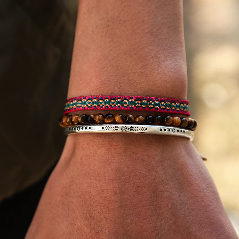 3 шт.компл. браслет ручной работы из веревки с узлом для мужчин натуральный тигровый глаз из бисера в богемном стиле посеребренный Браслет-манжета ювелирные изделия