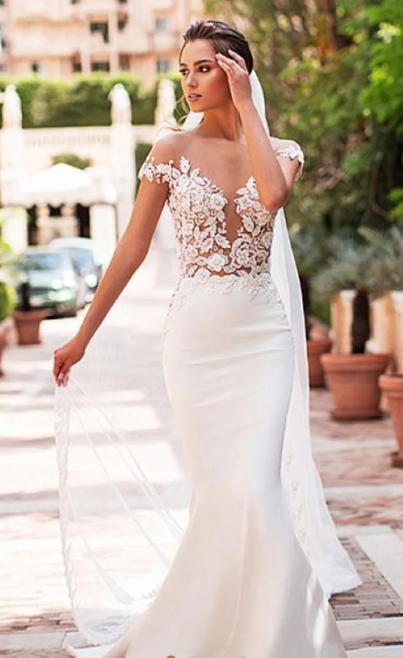 Свадебное платье-Русалка, элегантное платье Мари, атласная Кепка, с рукавами, 2020, с пуговицами сзади, белое