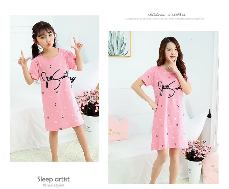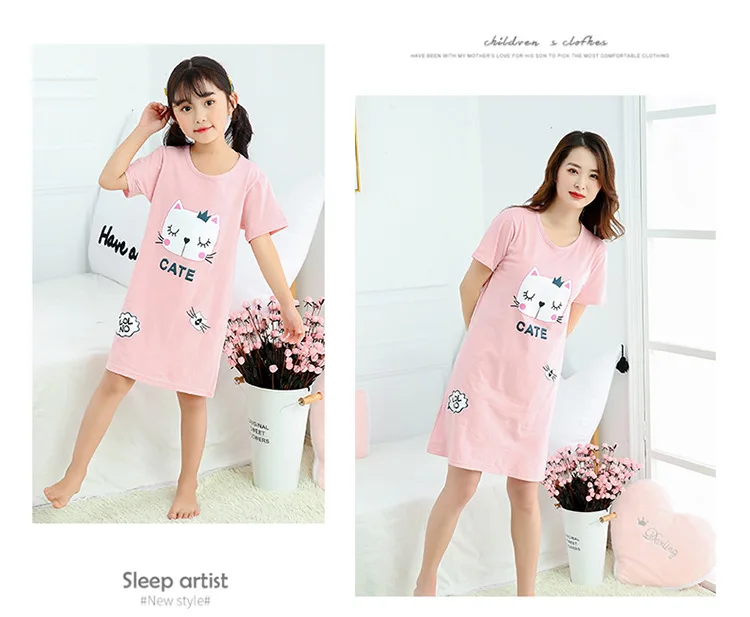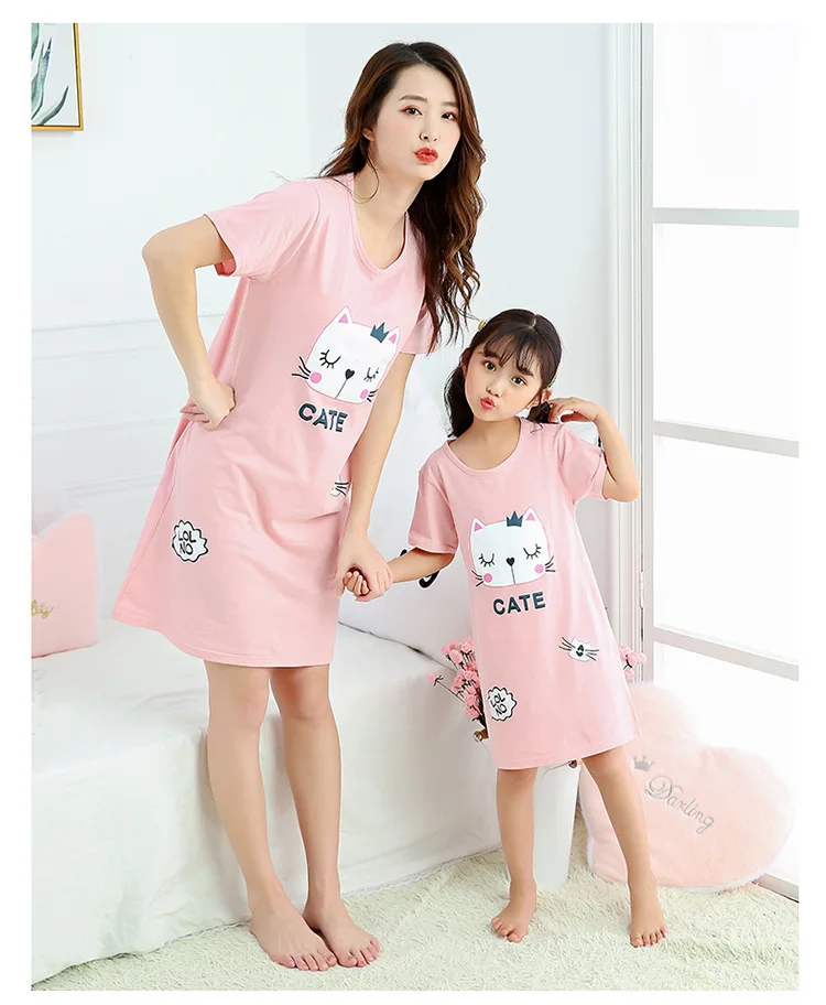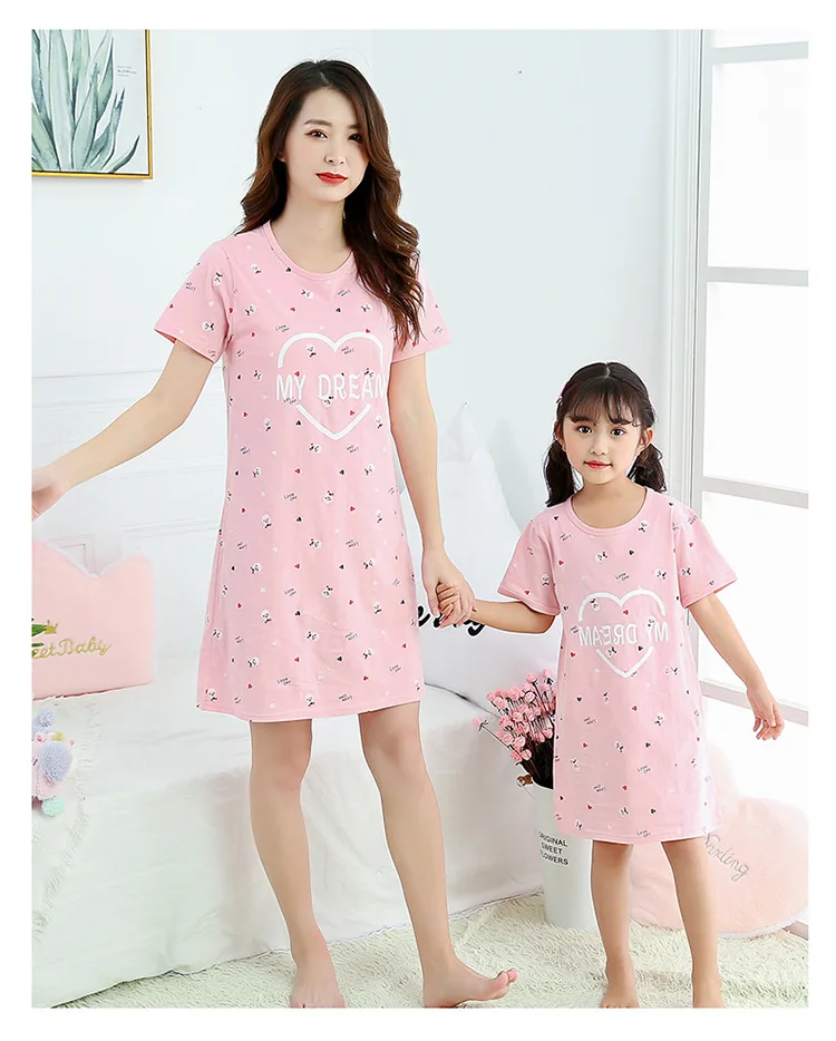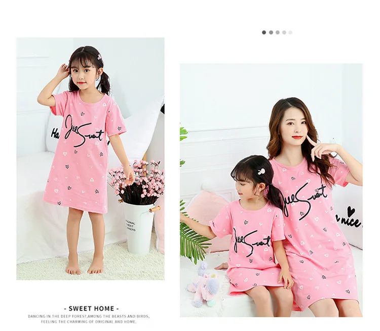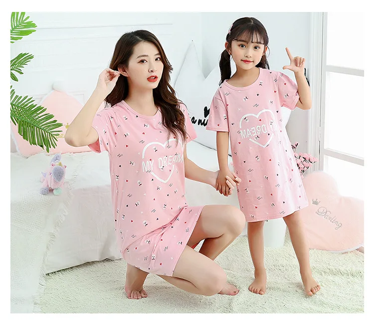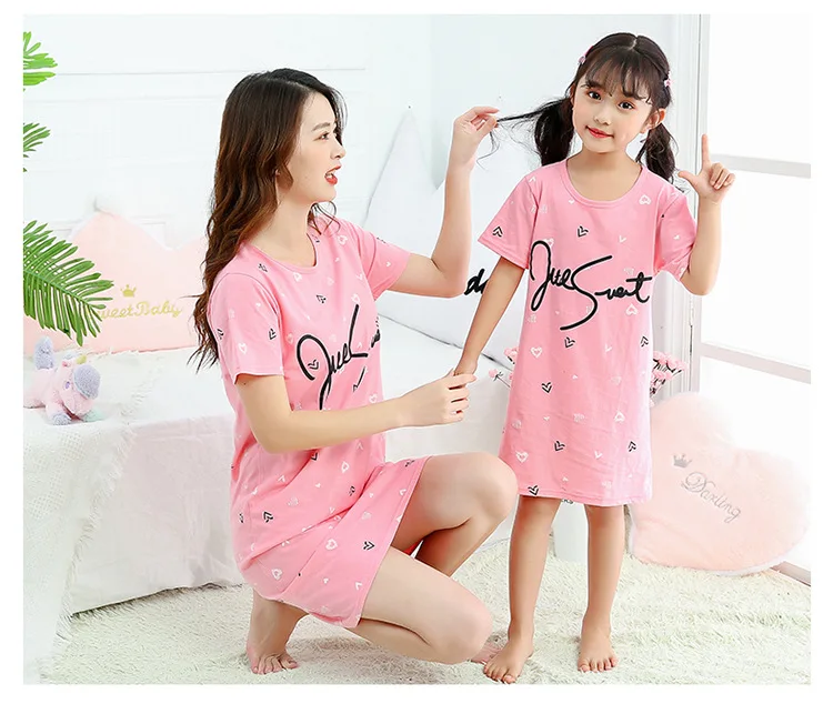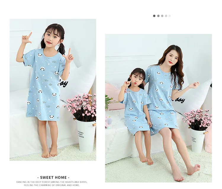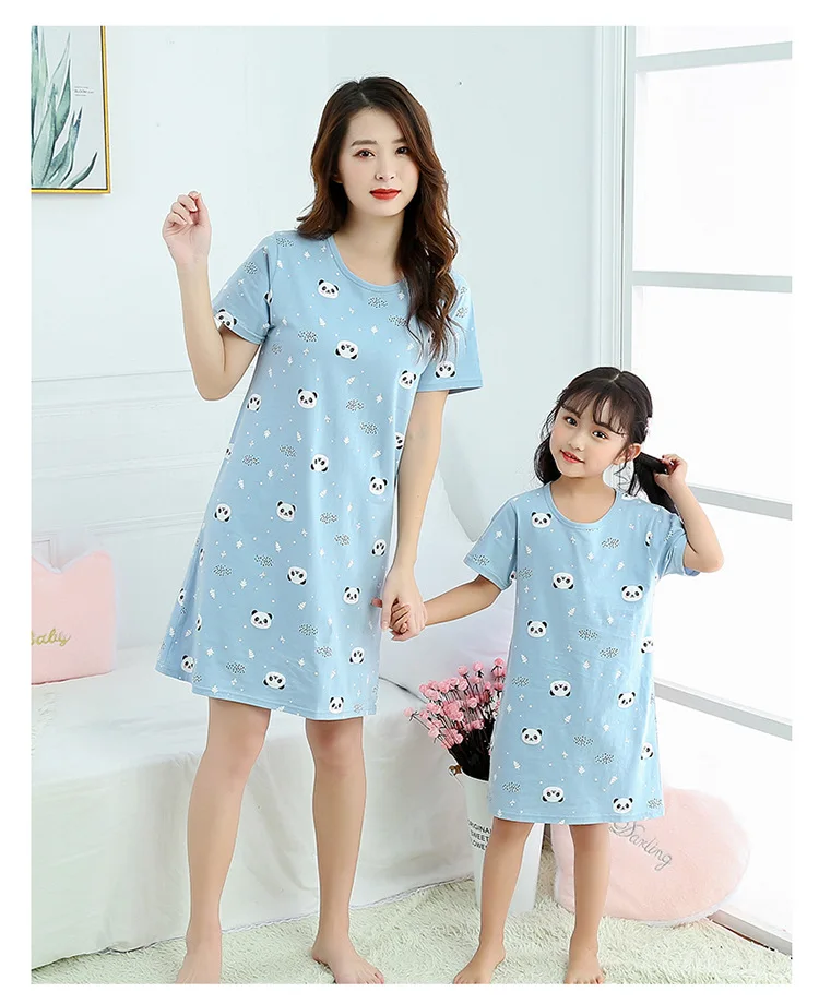 Пижама для девочек 2021 летний комплект одежды в стиле Family look; Хлопковая юбка для девочек свободного покроя для мамы и дочки Домашняя одежда пижамы для женщин ночные рубашки для девочек