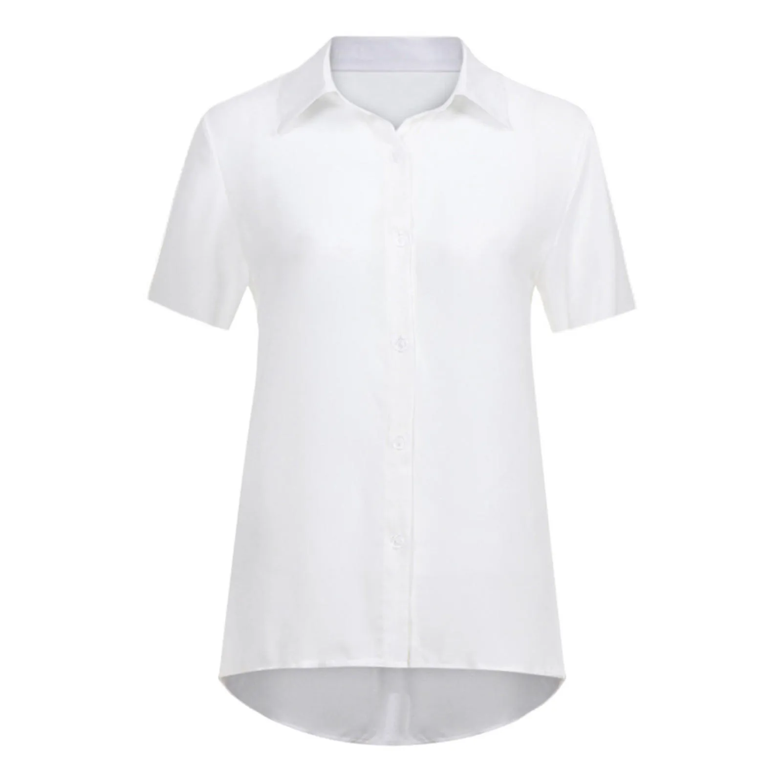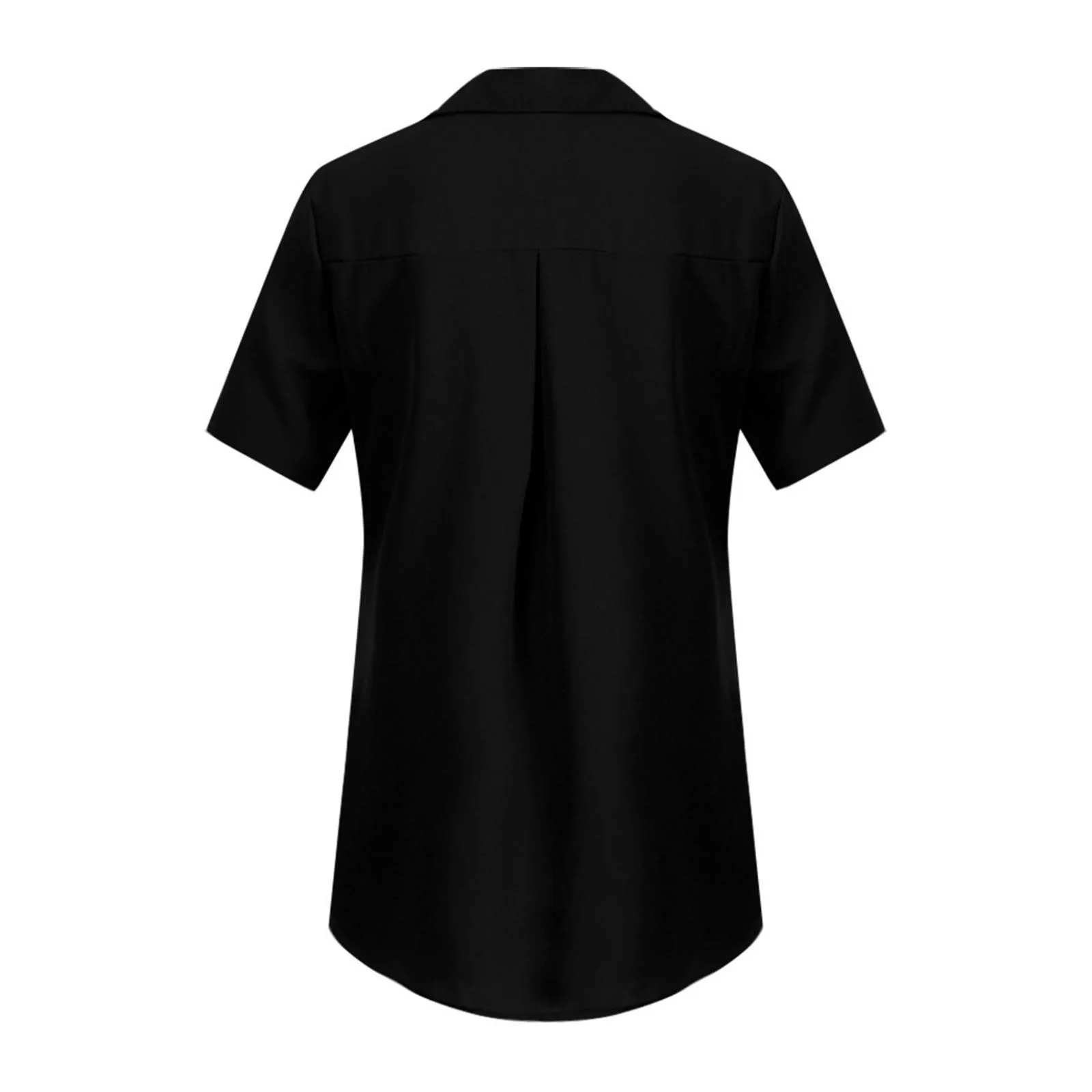 Блузка женская однотонная офисная с коротким рукавом, однотонный топ, модная рубашка, большие размеры, на лето
