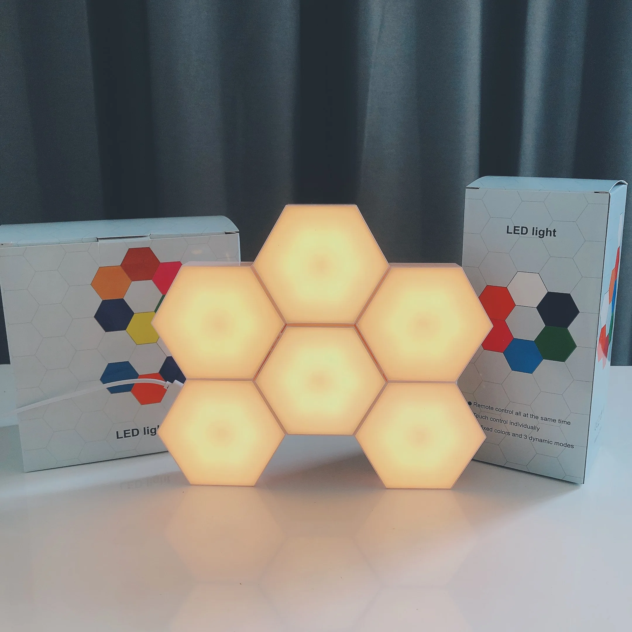 Новая квантовая лампа с дистанционным управлением RGB, шестигранные лампы, модульная сенсорная Чувствительная лампа, светодиодный ночсветильник, магнитный настенный светильник