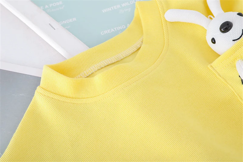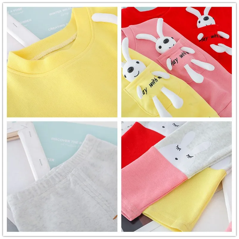 Комплекты одежды для девочек, весна 2021, детская Кружевная футболка с длинным рукавом и милым мультяшным Кроликом, штаны, Повседневная стильная детская одежда для отпуска