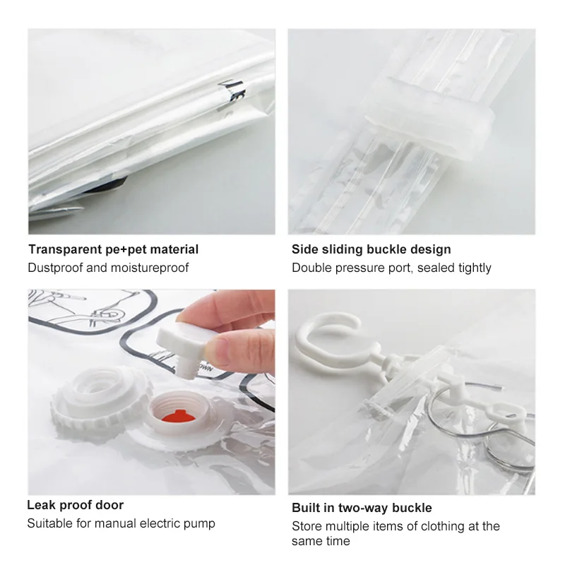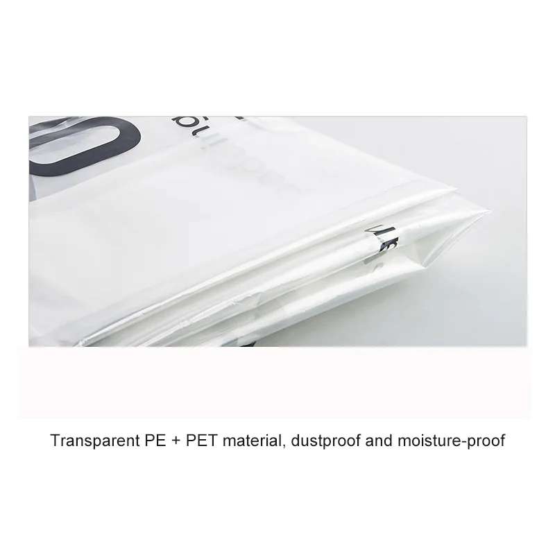 1. Прозрачный полиэтилен + ПЭТ, компактный клапан, интимная конструкция с боковым вытягиванием, легкая компрессионная подвеска, пуховики, пальто и т. д., экономия места, чистый шкаф.