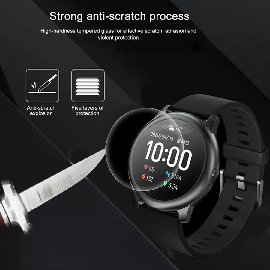 Твердость 9H, защита от ударов, царапин, отпечатков пальцев, защищает ваши часы от повреждений от грубых и острых предметов, отличная защита, когда ваши умные часы падают.