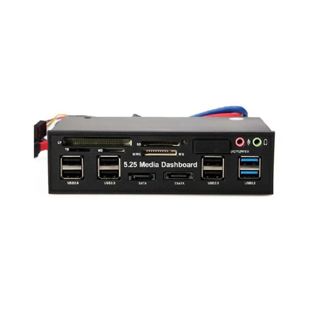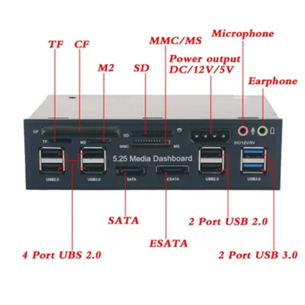 5,25 дюймовая медиа панель передняя панель USB3.0 + 3 порта USB 2,0 HUB + eSATA + SATA + M2/TF/Безопасность цифровая карта/MMC/MS/CF аудио мульти кардридер для компьютера чехол для оптических дисков бухта.