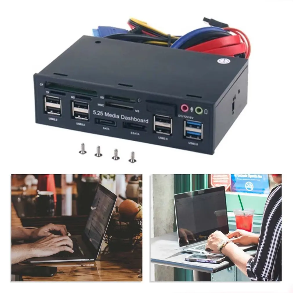 5,25 "ПК Передняя панель приборной панели медиа Usb 3,0 Hub аудио Esata Sata кардридер настольный оптический привод многофункциональная Панель 525E