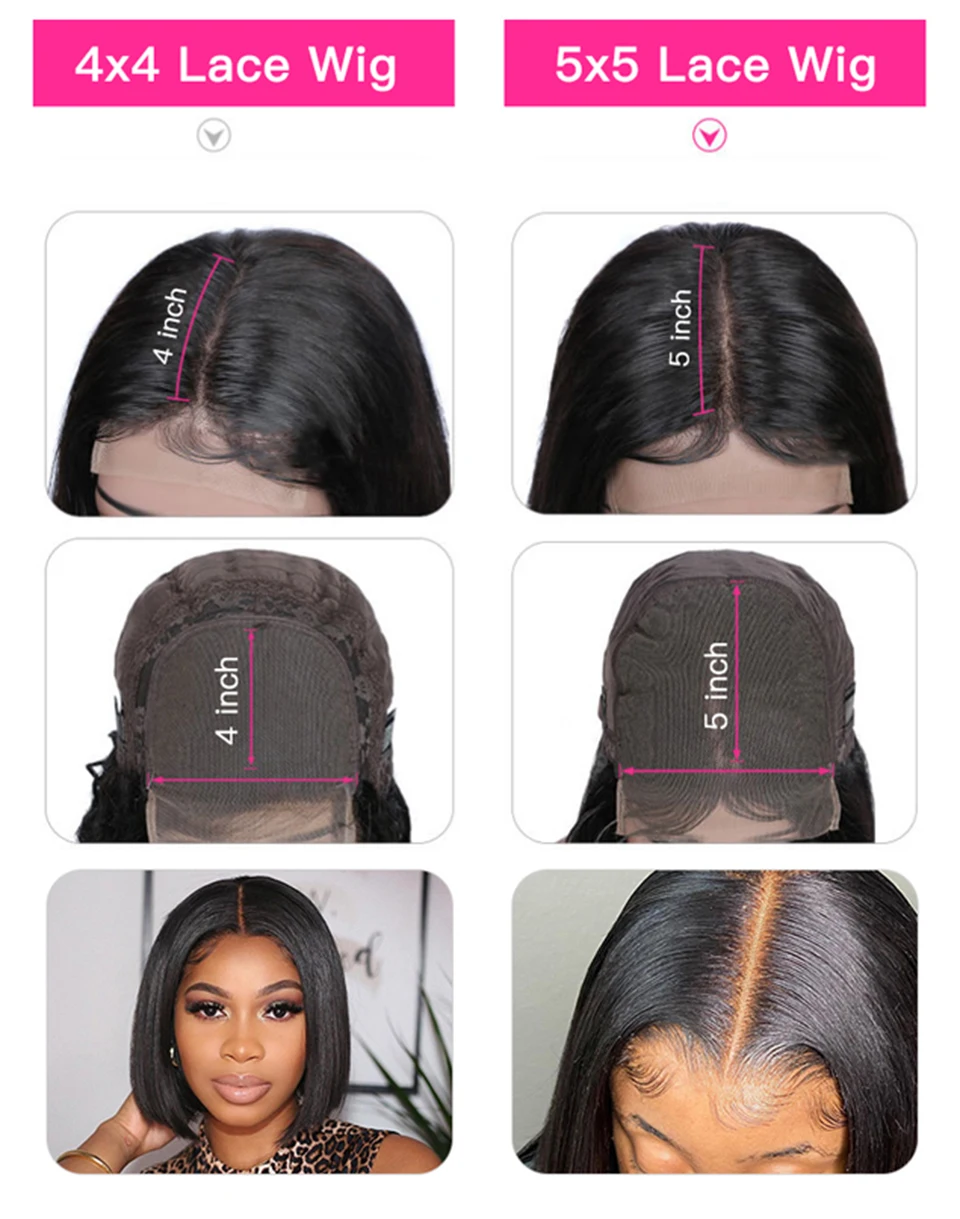 Прямые парики из натуральных волос Боб 13x 4 на сетке для чернокожих женщин, бразильские, без клея, с застежкой на сетке 4x4 5x5, прозрачные фронтальные