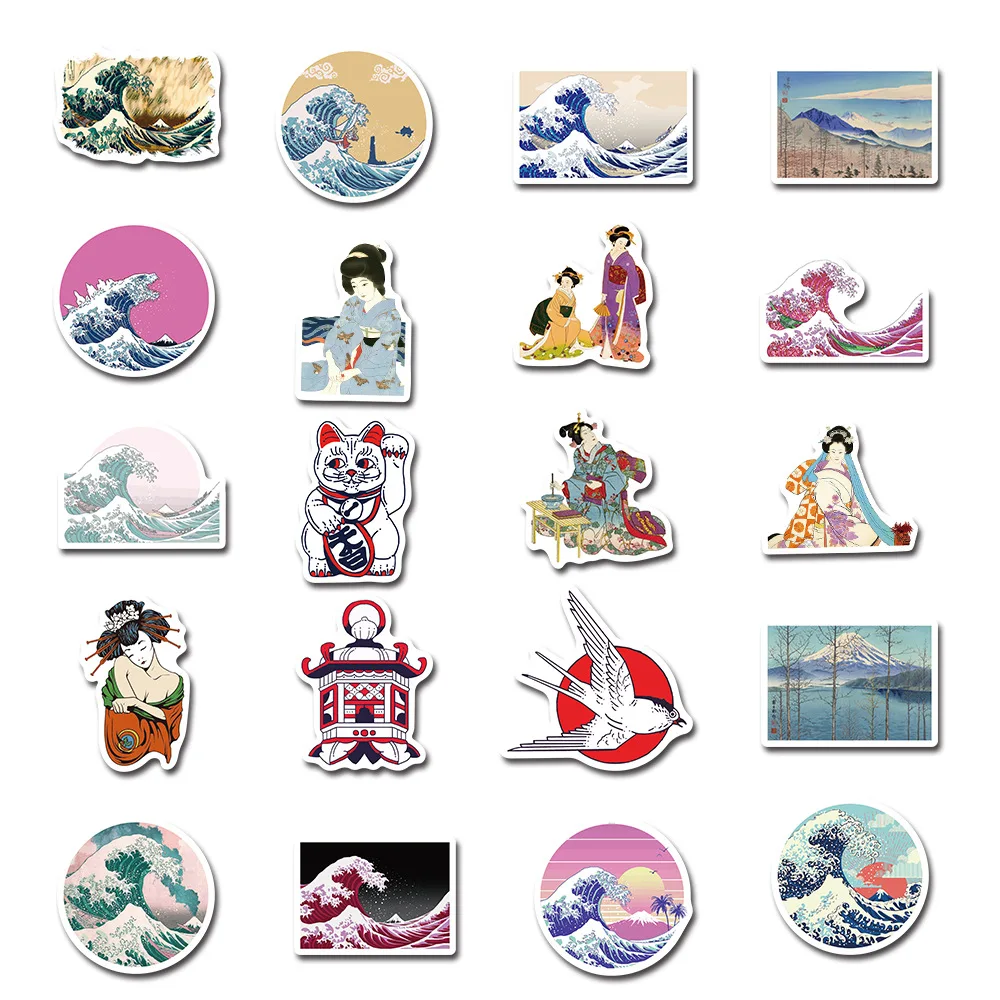 Японская художественная роспись на бумаге укийой, 103050 шт., Стикеры для чемодана, скейтборда, стакана для воды, граффити, водонепроницаемые, оптовая продажа