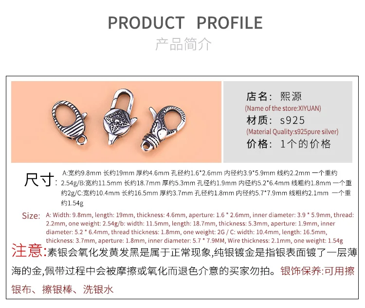 QQ застежка Ретро тайский серебряный кулон застежка 925 Чистое Серебро DIY аксессуары ожерелье кольцо застежка