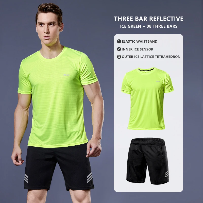 2 шт.компл. Мужская спортивная одежда футболка с коротким рукавом с...