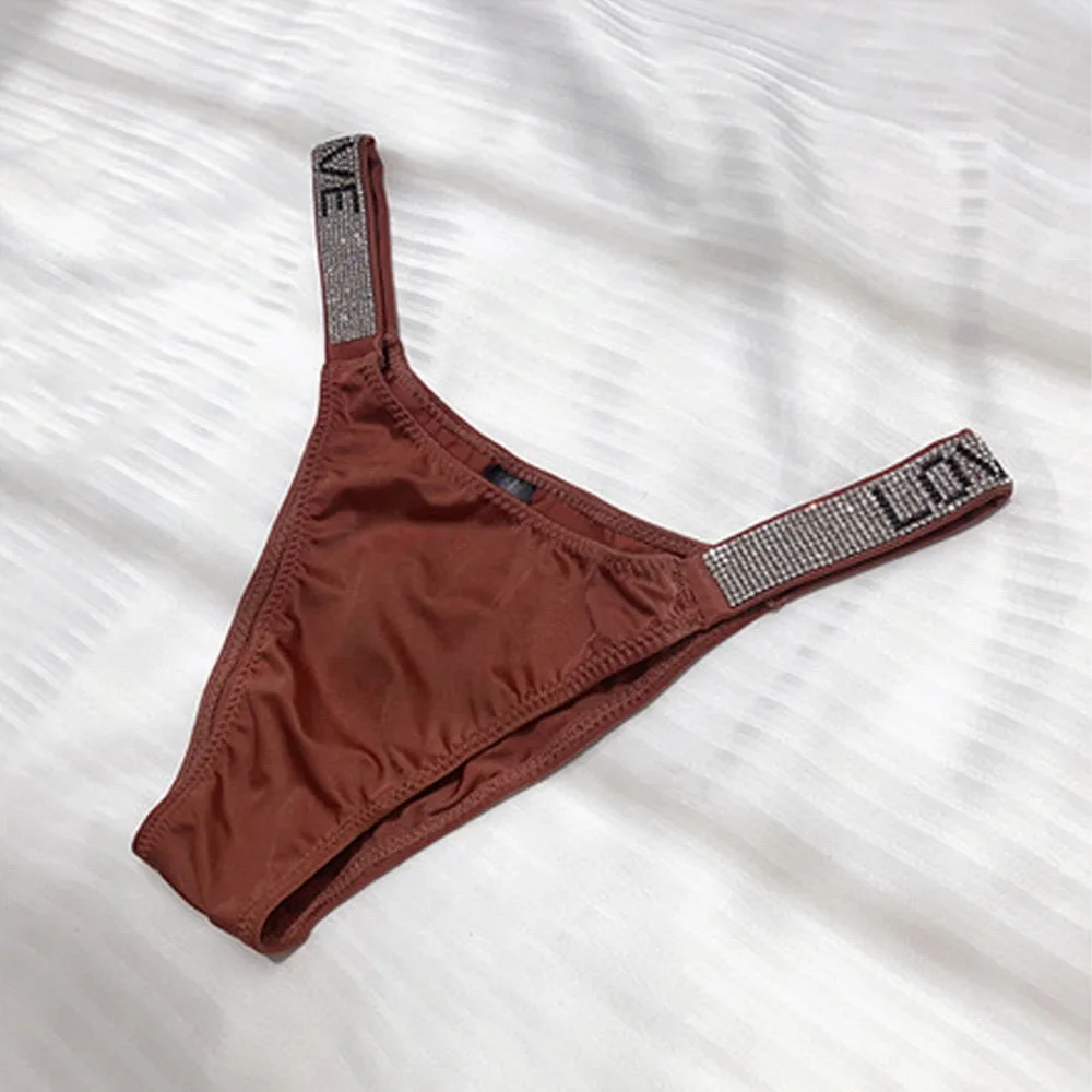Женские трусики-стринги с заниженной талией, модные стринги с буквенным пояс со стразами, сексуальные стринги с Т-образной спинкой, нижнее белье, 2021