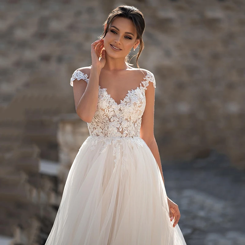 Свадебное платье принцессы цвета слоновой кости, пышное платье с рукавами-крылышками, аппликацией, трапециевидной формы, элегантное, 2020
