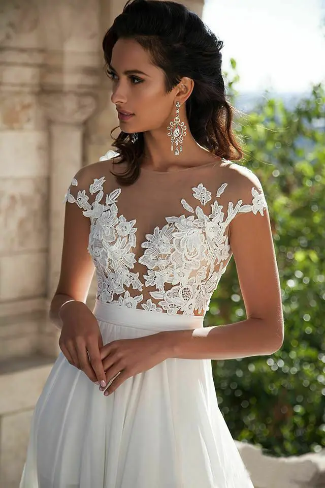 Кружевные свадебные платья с разрезом, Пляжное шифоновое ТРАПЕЦИЕВИДНОЕ ПЛАТЬЕ в стиле бохо, с разрезом, с коротким рукавом, для свадьбы, 2020