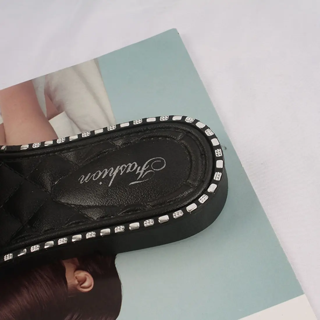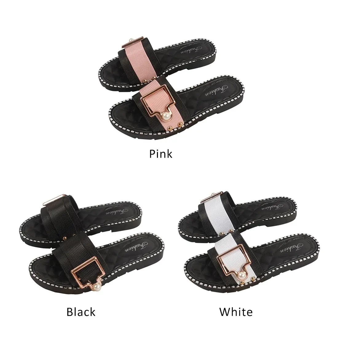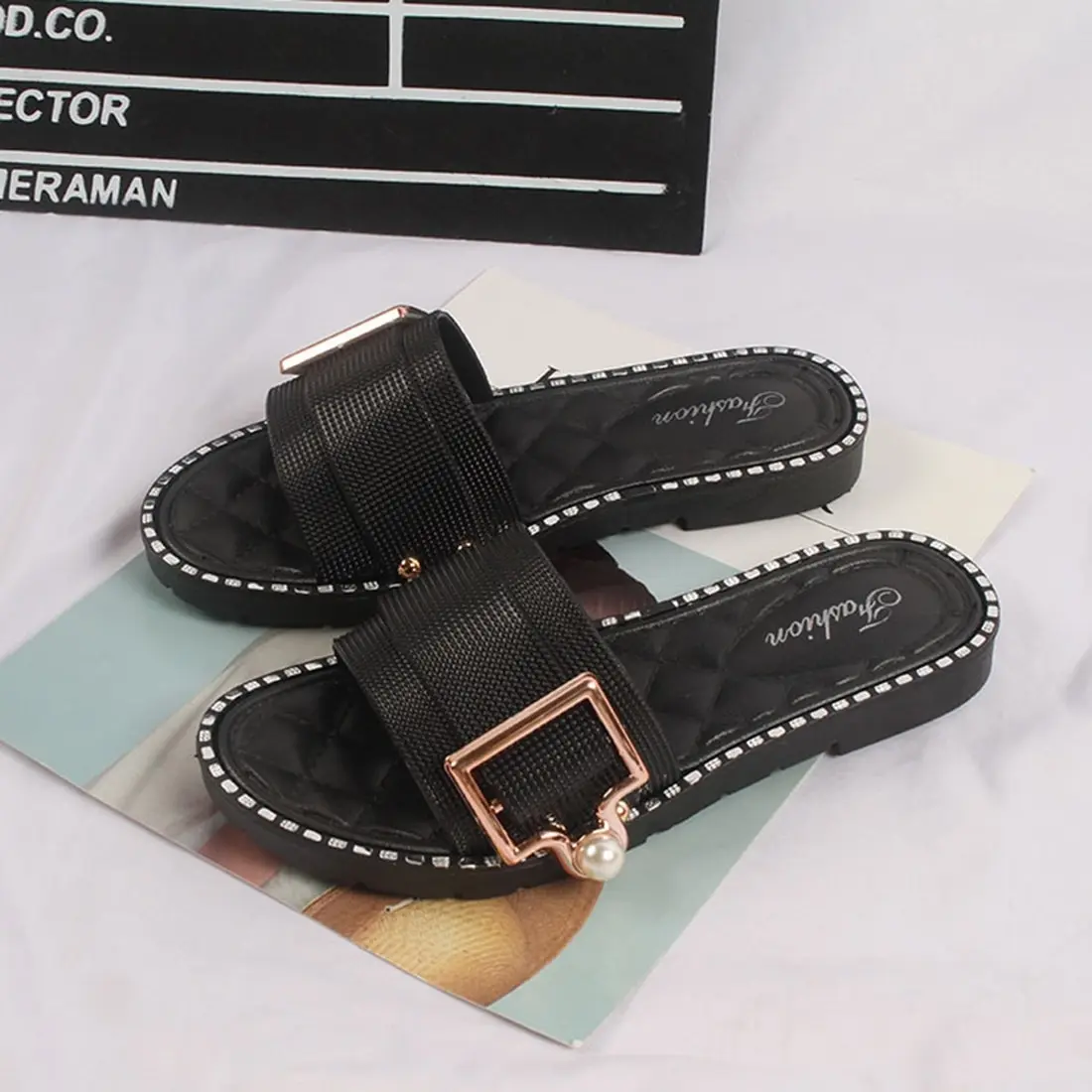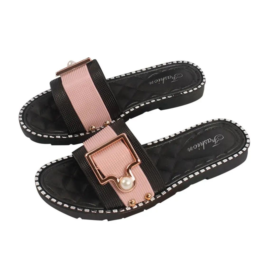 2021 новые женские модные пляжные шлепанцы, сланцы Летняя обувь плоские сандалии на плоской подошве со стразами, уличная женская обувь с жемчугом, женские туфли