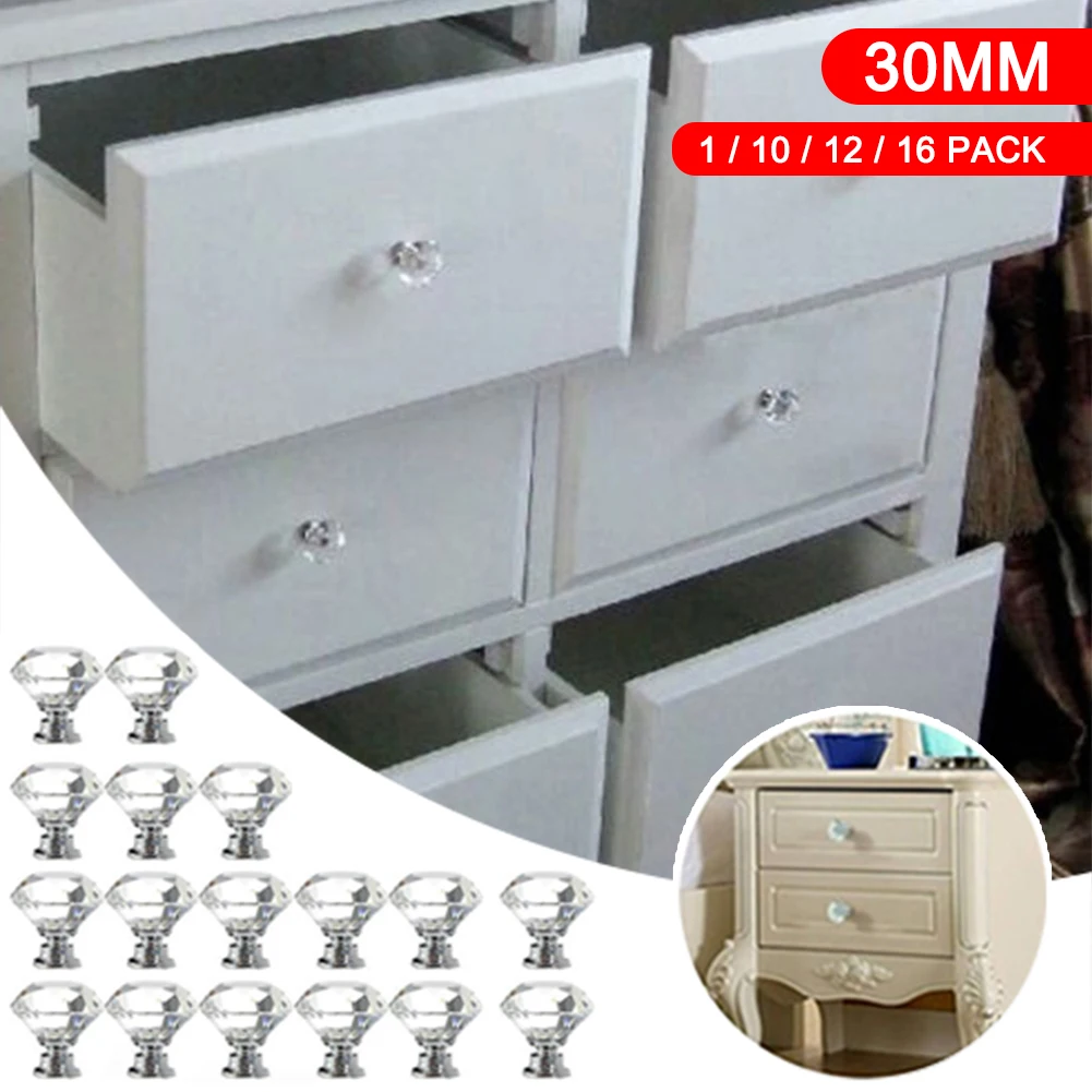 30 мм Алмазная форма дизайн хрустальные стеклянные ручки шкаф ручки...