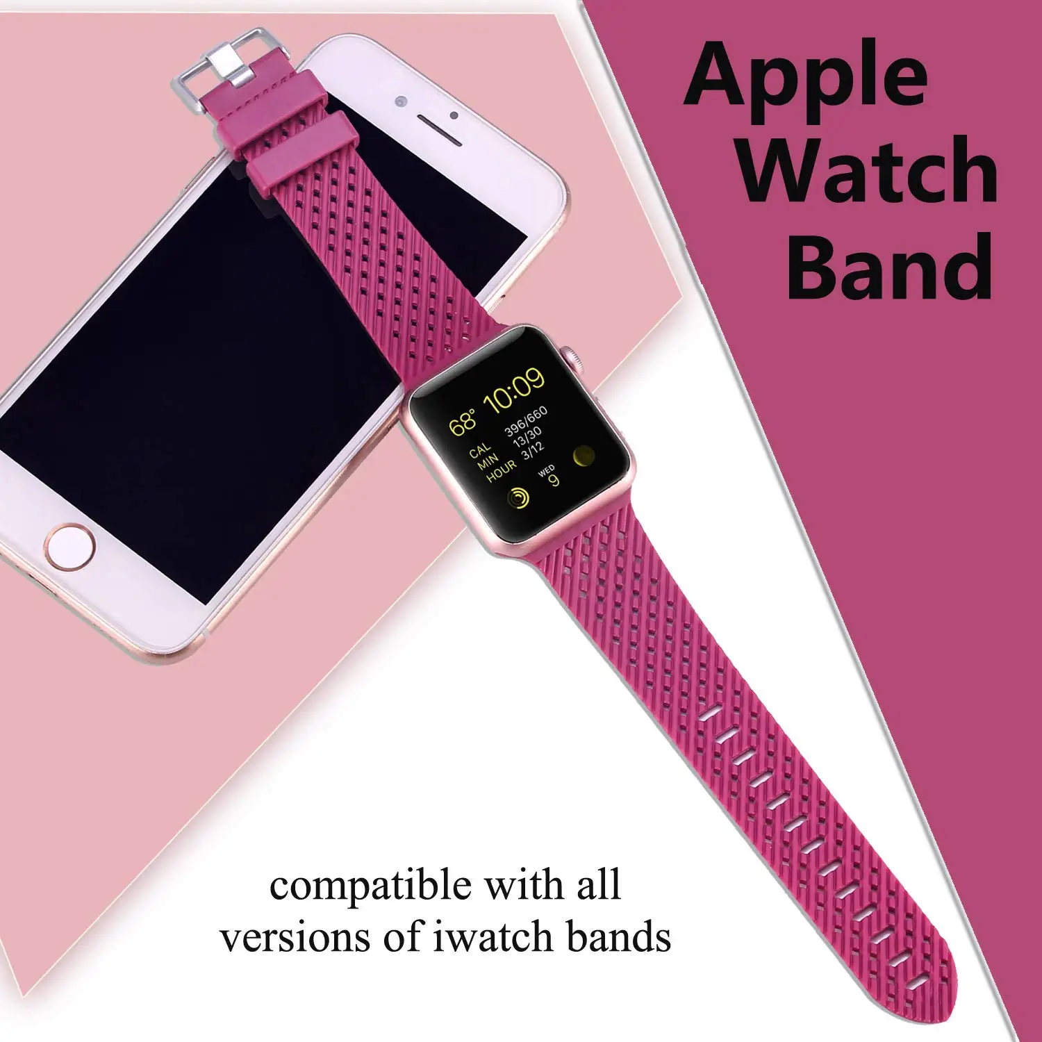 Совместим с Apple watch series 5,4 ,3 ,2 ,1, для Nike Sport, Edition. Потрясающие браслеты iwatch подходят для женщин и мужчин. 38/40 мм для apple watch аксессуары ремешки подходит S/M: 5,6 "-7,6", S/M/L: 6,2 "-8,5" запястья; 42/44 мм для apple watch полосы fit S/M: 5,6 "-7,8", S/M/L: 6,4 "-8,8" на запястье. Больше отверстий для воздушного потока делают часы с резиновыми лентами легкими, пусть ваше запястье будет более дышащим и удобным, особенно летом. Пожалуйста, имейте в виду, что iwatch 4 5 6 SE band поставляется со встроенным адаптером для apple watch, который легко включается и выключается и удерживается очень хорошо. 10 однотонных цветов подойдут для Apple iWatch и дадут вам больше вариантов, чтобы хорошо сочетать ваш наряд на каждый день, различные перфорированные ремешки для часов придадут вашим часам 38 мм 42 мм 40 мм 44 мм спортивный и стильный вид.