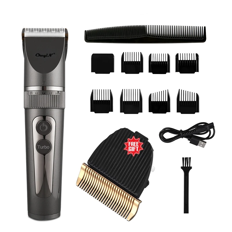 4. Быстрая зарядка через USB, 2 часа зарядки 120 минут рабочего времени. Светодиодный Интеллектуальный Электрический дисплей количества и шестерни. Триммер для волос может установить 3 скорости вращения: 5800 об/мин/6300 об/мин/6800 об/мин для различной текстуры волос.