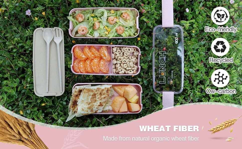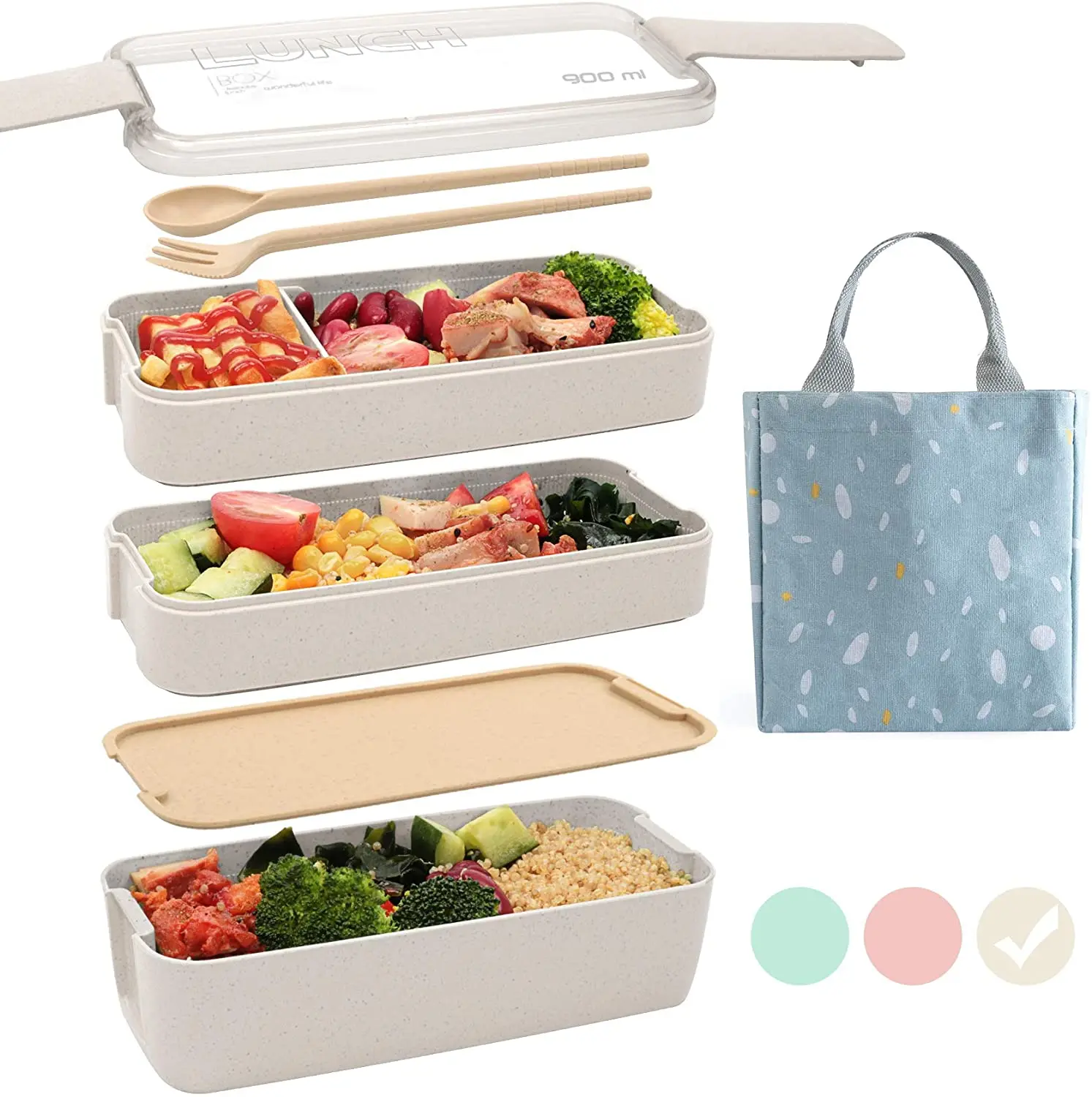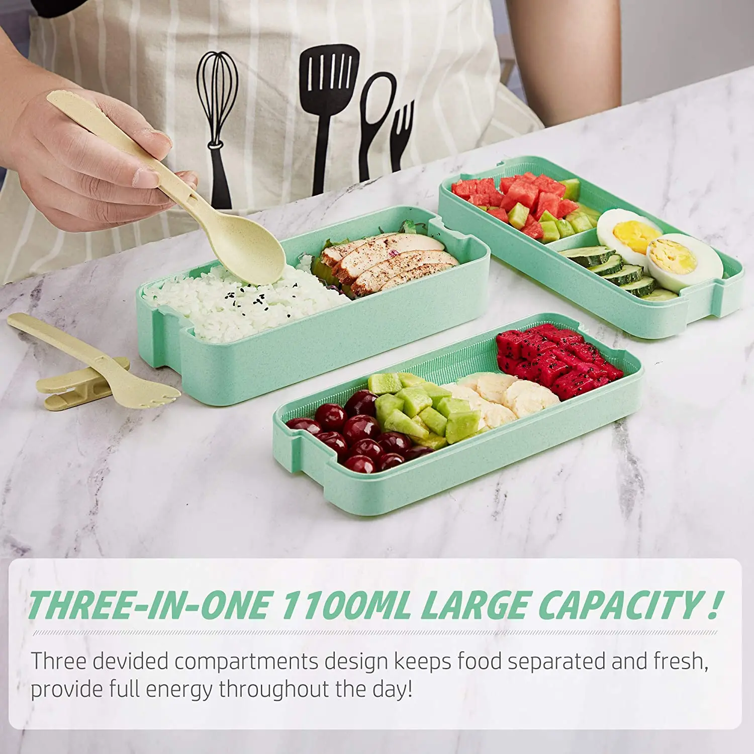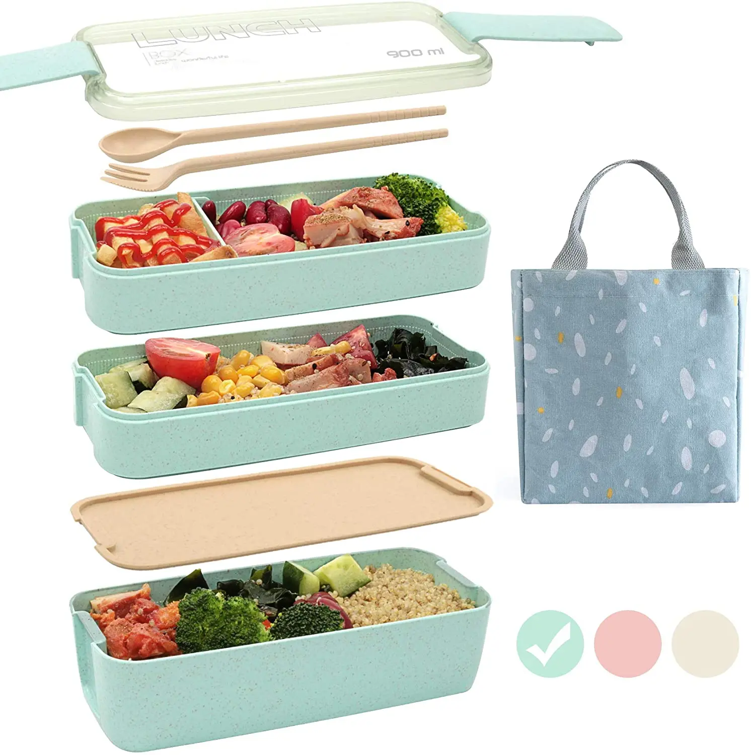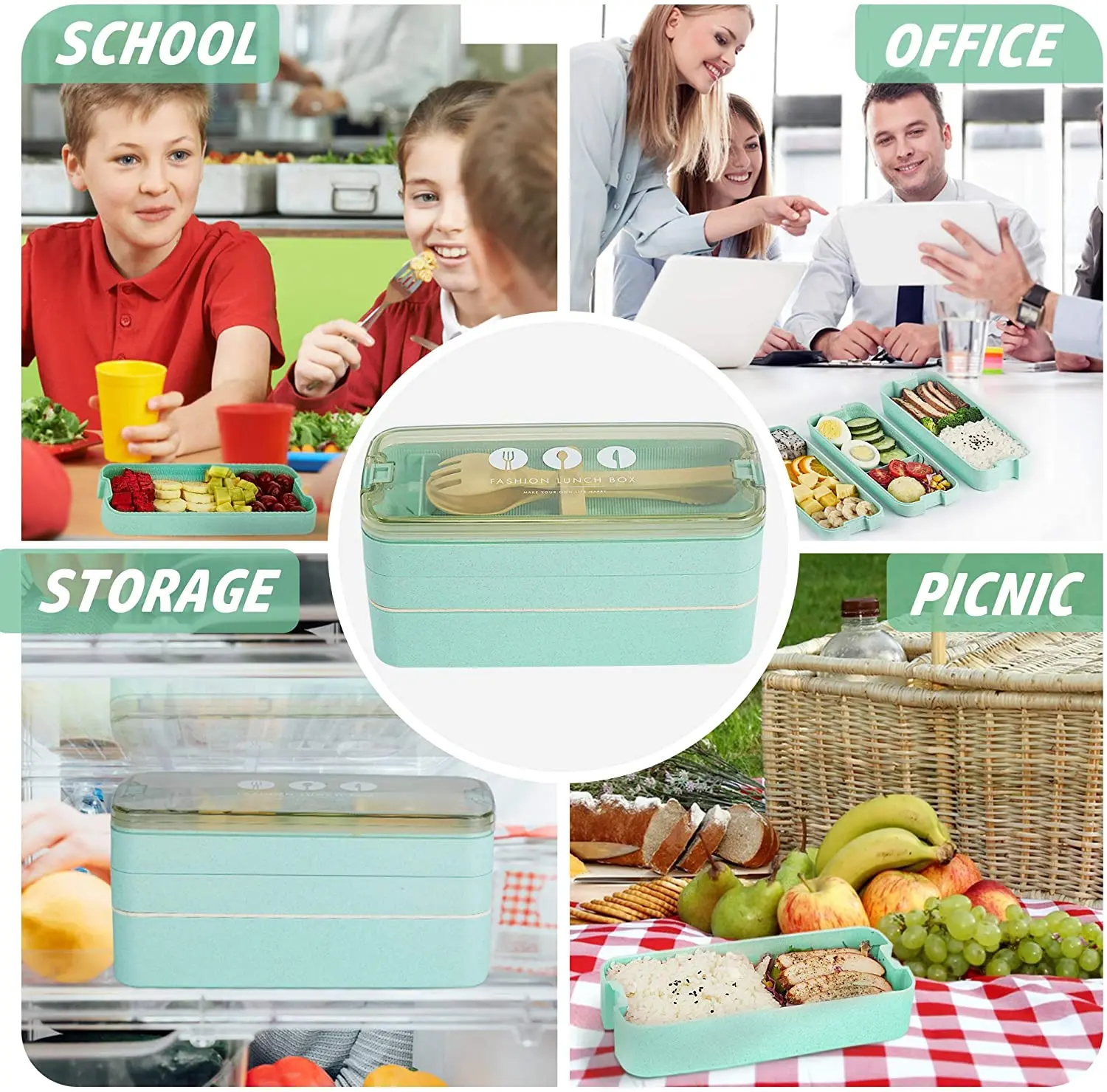 Коробка для едыбенто, Ланч-бокс из здорового материала, трехслойная зернистая солома, герметичная, безопасная для микроволновой печи, детский Ланч-бокс без бисфенола А