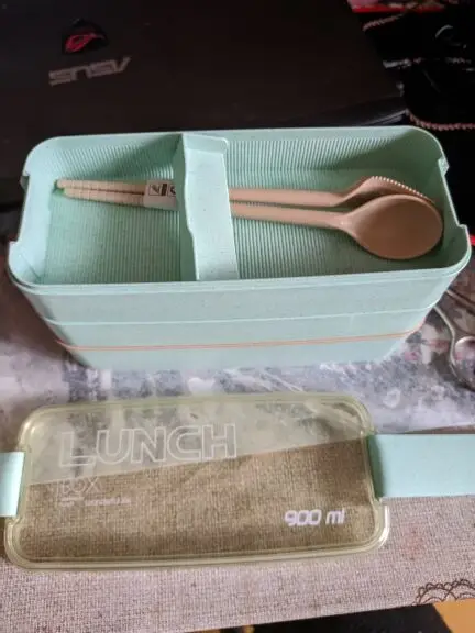 Очень красивый Ланч-бокс и его достаточно для взрослой леди. 3 слоя помогут вам отделить различные продукты питания, такие как основной курс, содержание углерода, овощи ..
