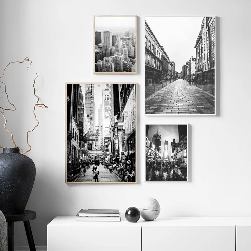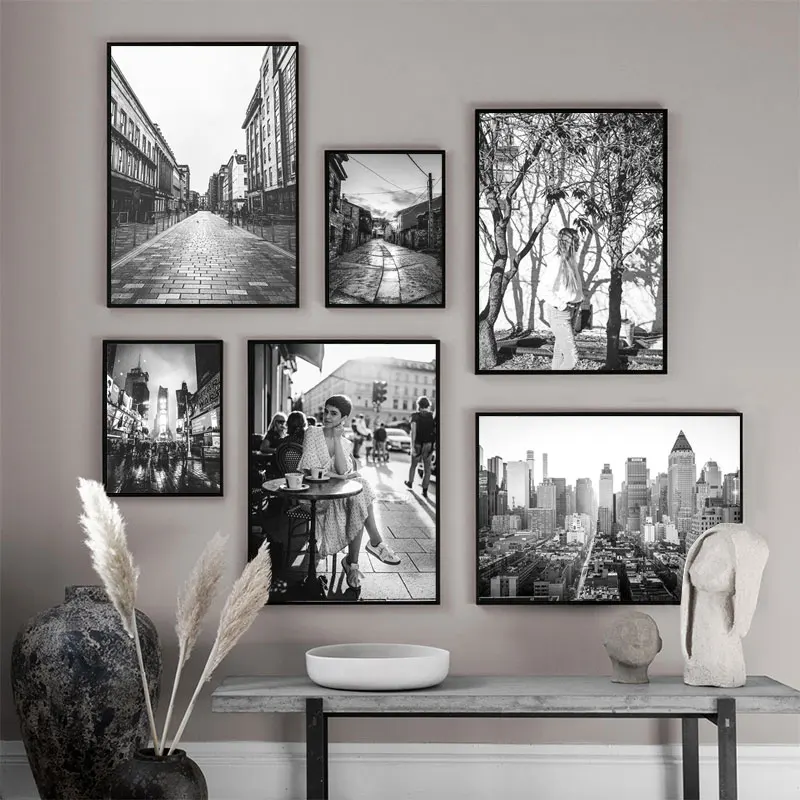 Современная модная городская уличная Картина на холсте Черно-белая ...