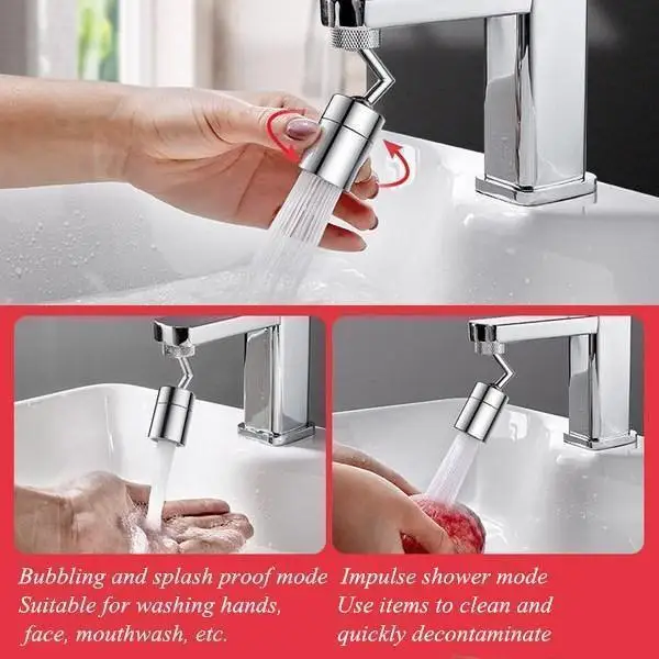 Универсальное вращение на выходе 720 ° воды/мытье лица и полоскания рта более удобно/Защита от брызг воды/фильтр с четырьмя сетками для удаления примесей/двойные прокладки для предотвращения капель