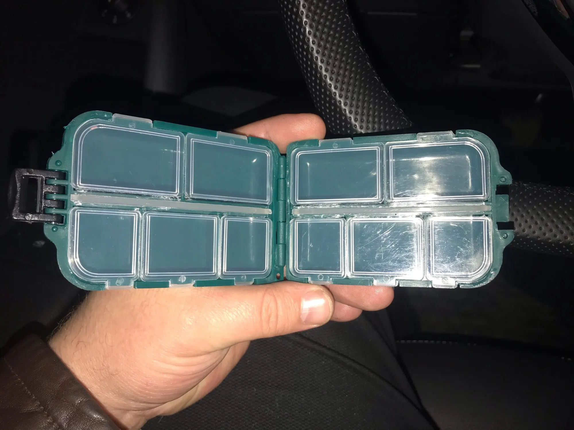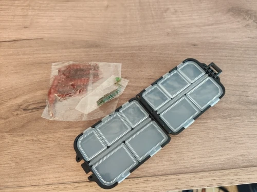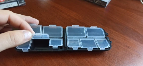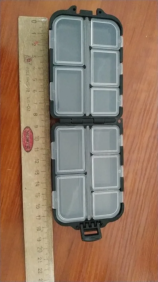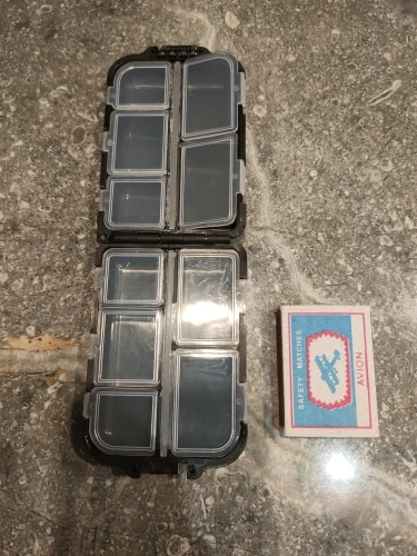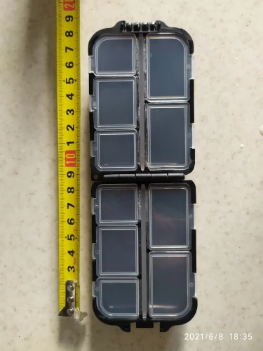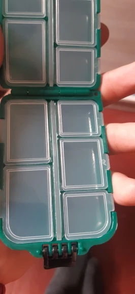 Все идеально. Коробка имеет идеальную распределение и размер для небольшого рыболовного материала. Закрытие работает очень хорошо.