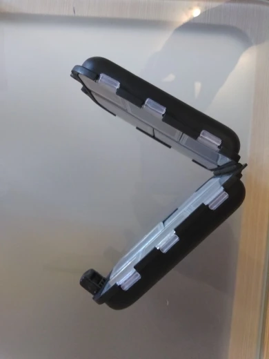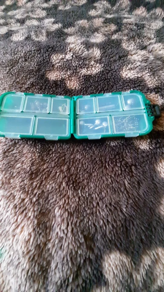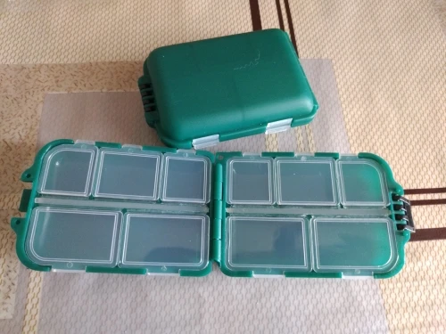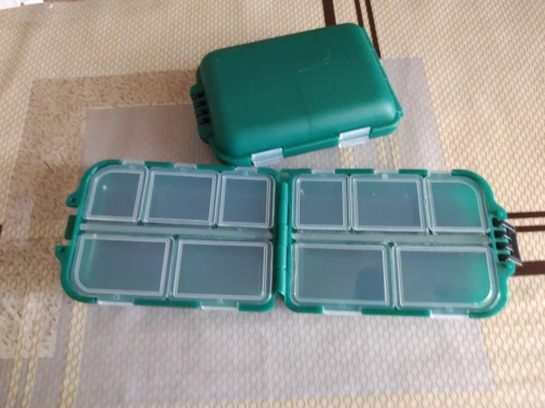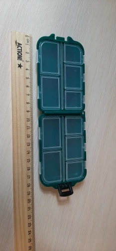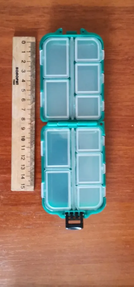 Удобная коробочка для рыболовных мелочей. Уже есть одна такая, правда прошлую брал за 40 рублей, а сейчас уже за 100. Застежки прилегают плотно, думаю можно смело и крючки класть, ничего не должно высыпаться. Заказывал с другим товаром, чтобы доставку ускорили, в итоге заказы не объединили, но доставку этой коробки поменяли на более быструю, что мне и требовалось)