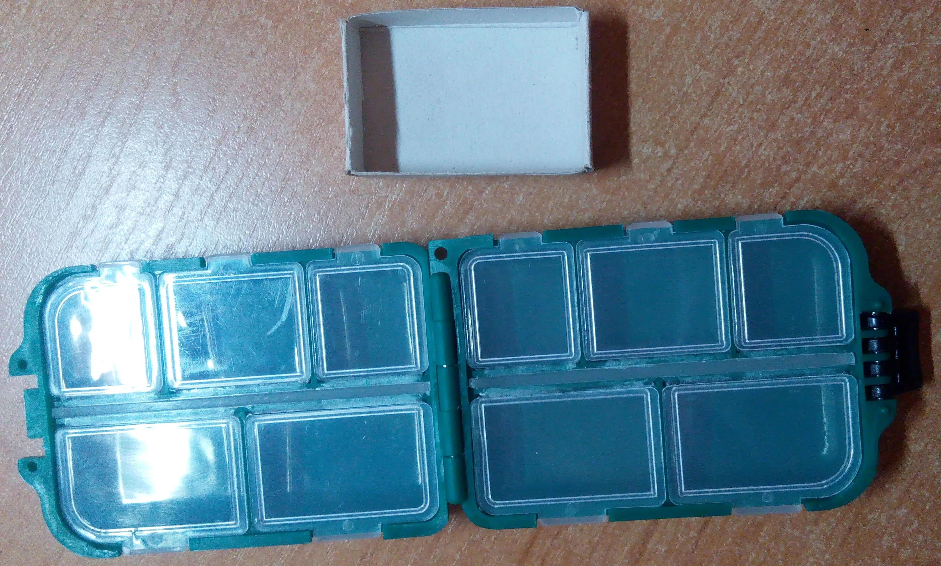 Коробочка для мелочей пришла без повреждений, очень хорошего качества, крышки отсеков закрываются очень хорошо, заказывал для рыболовных мелочей. Рекомендую продавца и данный товар. Продавцу спасибо большое!