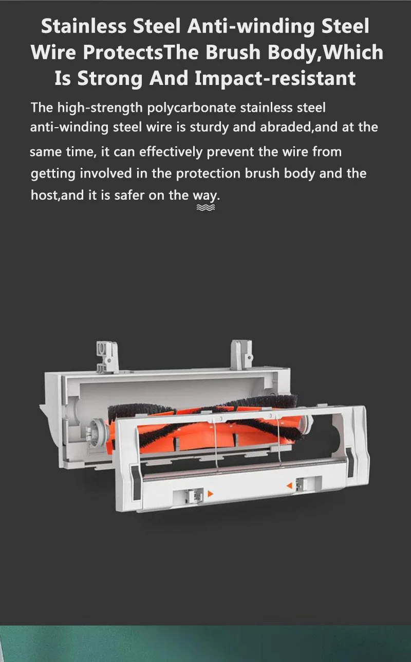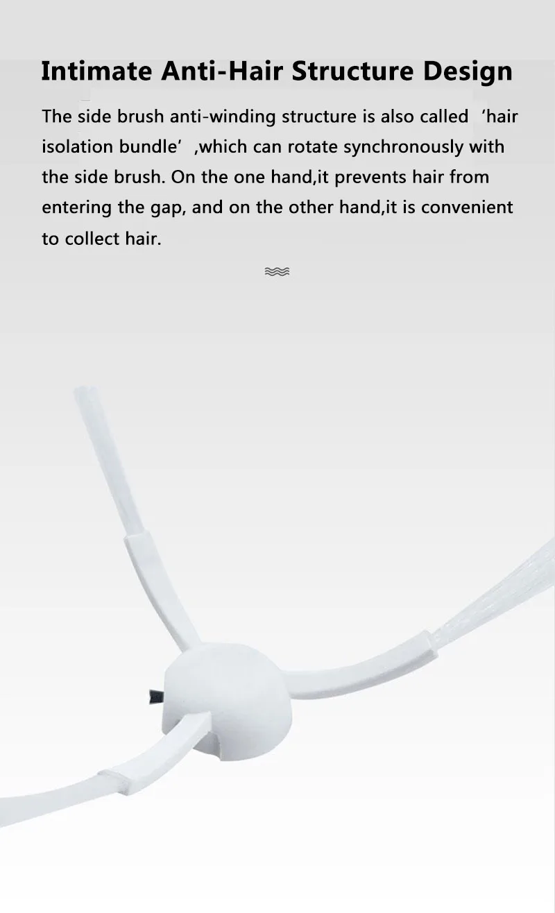 Боковая щетка с защитой от обмотки также называется «комплект изоляции волос», который может вращаться синхронно с боковой щеткой. С одной стороны, это предотвращает попадание волос в щель, а с другой-удобно собирать волосы.