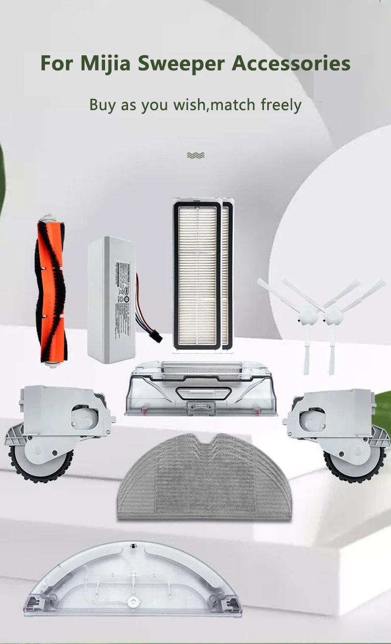 Аксессуары для Xiaomi Mijia Mi 1C, насадка для робота-пылесоса, фильтр Hepa, резервуар для воды, основная боковая щетка с крышкой, детали колеса
