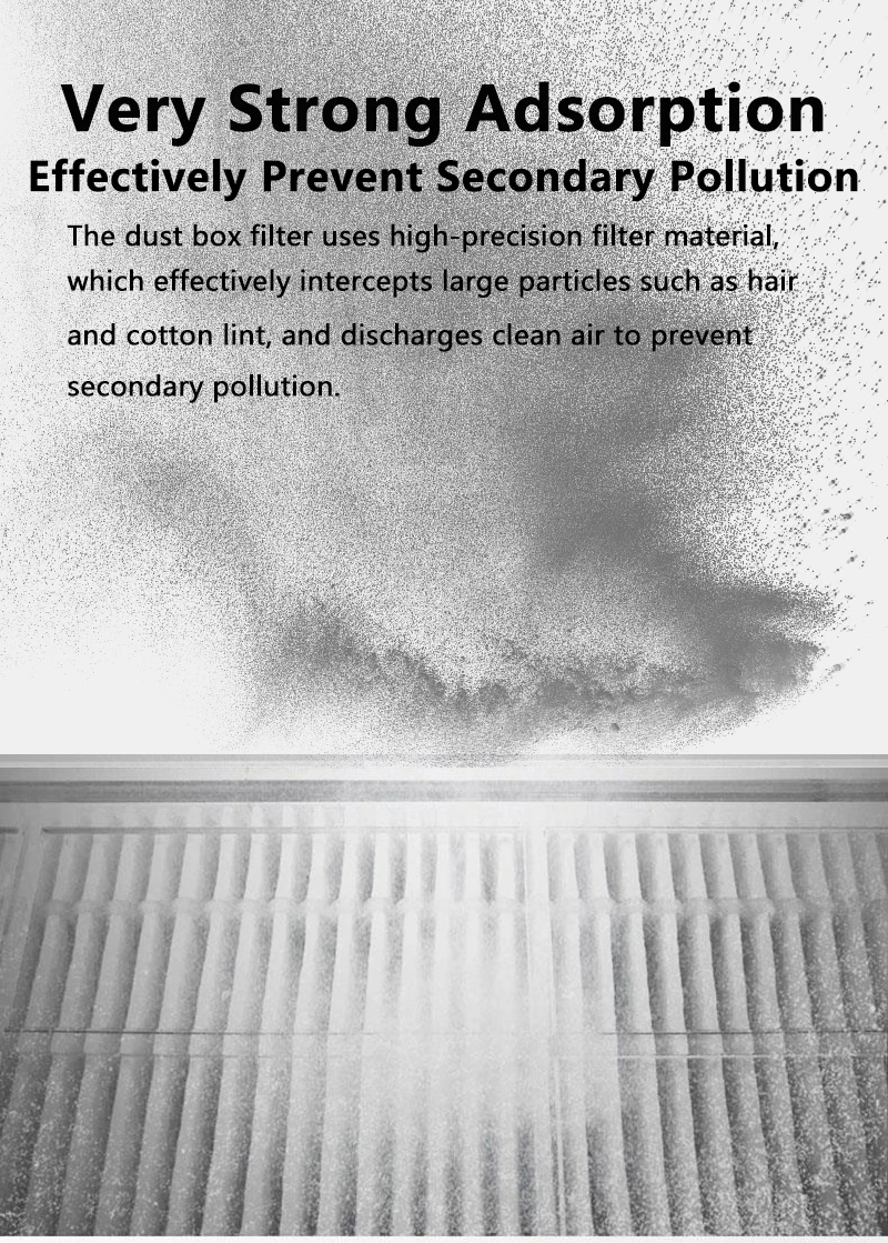 Фильтр пылесборника использует высокоточный фильтрующий материал, который эффективно улавливает крупные частицы, такие как ворс и хлопок, и сбрасывает чистый воздух для предотвращения вторичного загрязнения