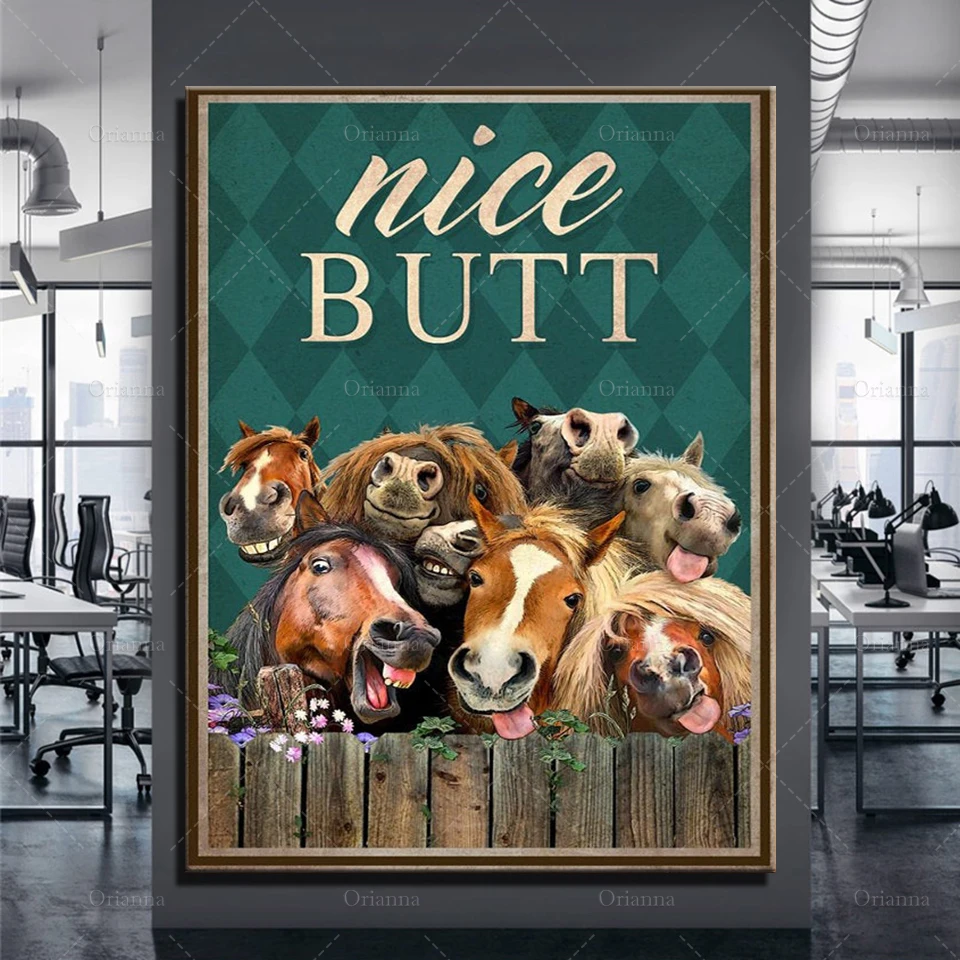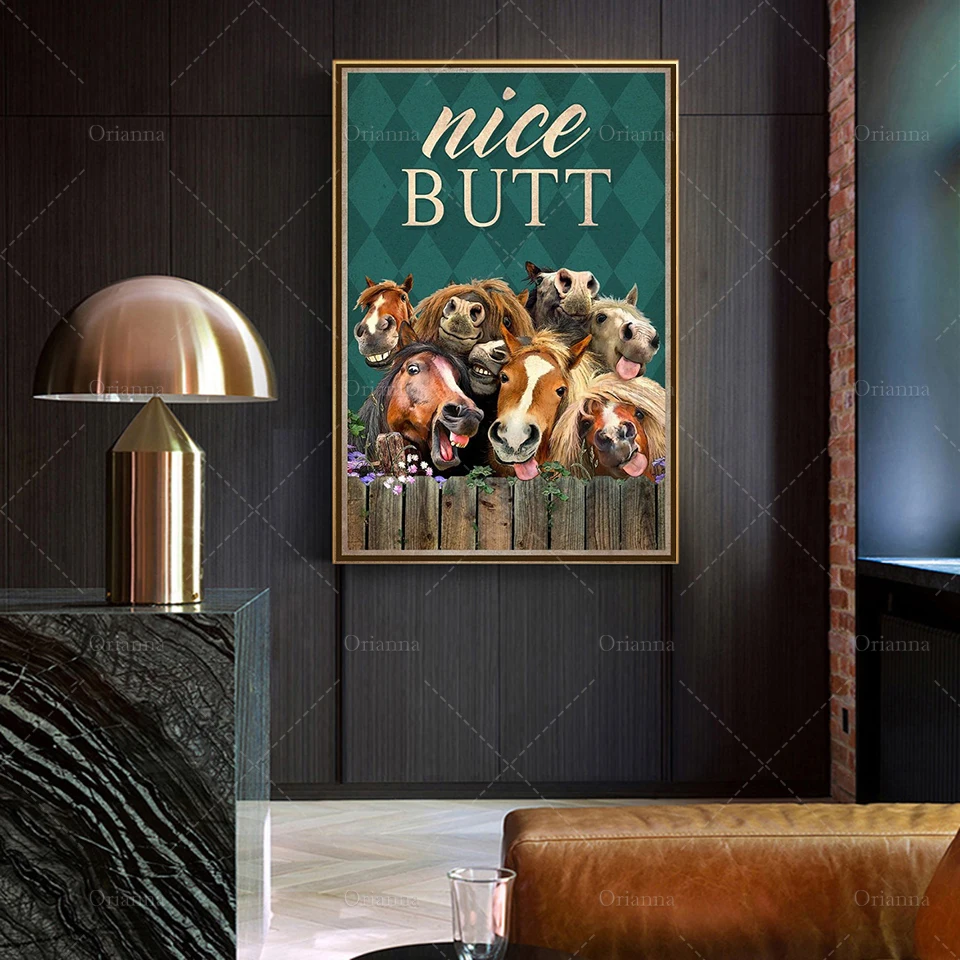 Красивый постер с ягодицами, настенное искусство с забавными лошадьми, забавная Картина на холсте с лошадьми для ванной, красивая стена, украшение для дома, холст, уникальный подарок