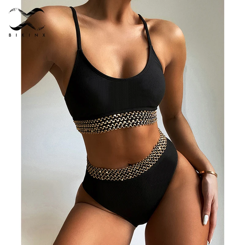 Бикини в рубчик In-X, 2021, женский купальник с высоким вырезом, же...