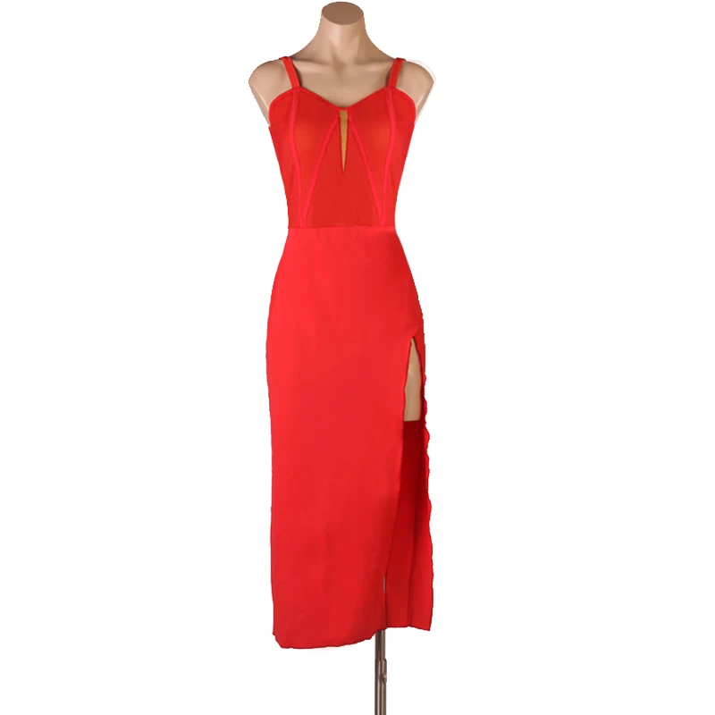 Платье для латинских танцев, длинная сетчатая юбка на бретельках, о...