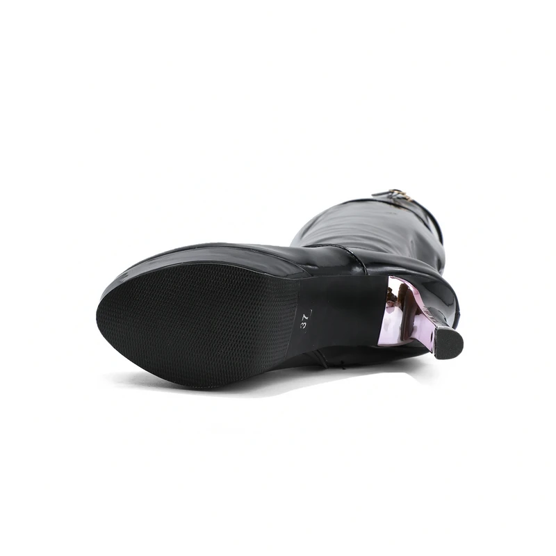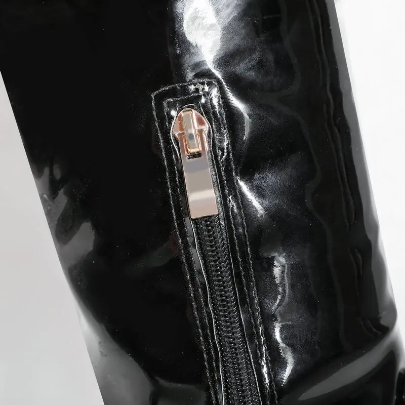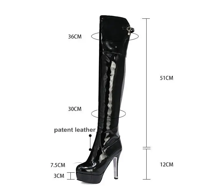 Женские ботфорты из лакированной кожи, на платформе 3 см, размеры 34-50