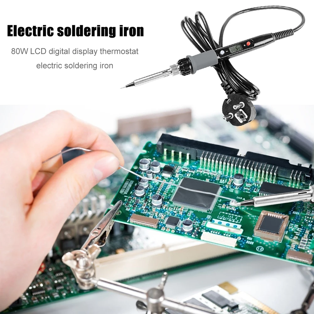 Портативный Электрический паяльник с ЖК-дисплеем 80 Вт, паяльная станция с регулируемой температурой, тепловой карандаш, инструменты для ремонта сварки, оловянный паяльник с вилкой европейского стандарта Спецификация: Материал: металл, пластик Напряжение: 220-240 В переменного тока Вилка: вилка европейского стандарта Мощность: 80 Вт Частота: 50 Гц Диапазон температур: 100-480 ℃ Стабильность температуры: ± 5 ℃ Тип нагрева: керамический элемент Жало паяльника: 900M-B1.2 Длина кабеля: 1,3 м/4,26 фута Размер паяльника: около 245x25x25 мм/9,53x0,98x0,98 дюйма Тип: Паяльник A, набор B Как паять: 1. Приготовьте припой и паяльник; В частности, необходимо содержать жало в чистоте, а жало должно быть покрыто припоем. 2. Пожалуйста, смочите губку перед использованием. 3. Используйте паяльник для нагрева паяльных частей, таких как выводы и прокладки печатной платы, а также равномерного нагрева паяльных частей. 4. Когда температура будет достаточно высокой, поднесите припой к соединению, припой плавится и будет свободно течь. 5. При достаточном количестве олова удалите припой. 6. Выньте паяльник в направлении около 45 °, а затем выключите питание. 7. Не вытягивайте жало паяльника наружу и используйте таким образом, иначе это сократит срок службы нагревательного элемента. Примечание: В связи с различиями мониторов и эффектами освещения реальный цвет товара может немного отличаться от цвета на фотографиях. Спасибо! Обратите внимание, что допускается отклонение в диапазоне 1–3 см из-за проведения замеров вручную.