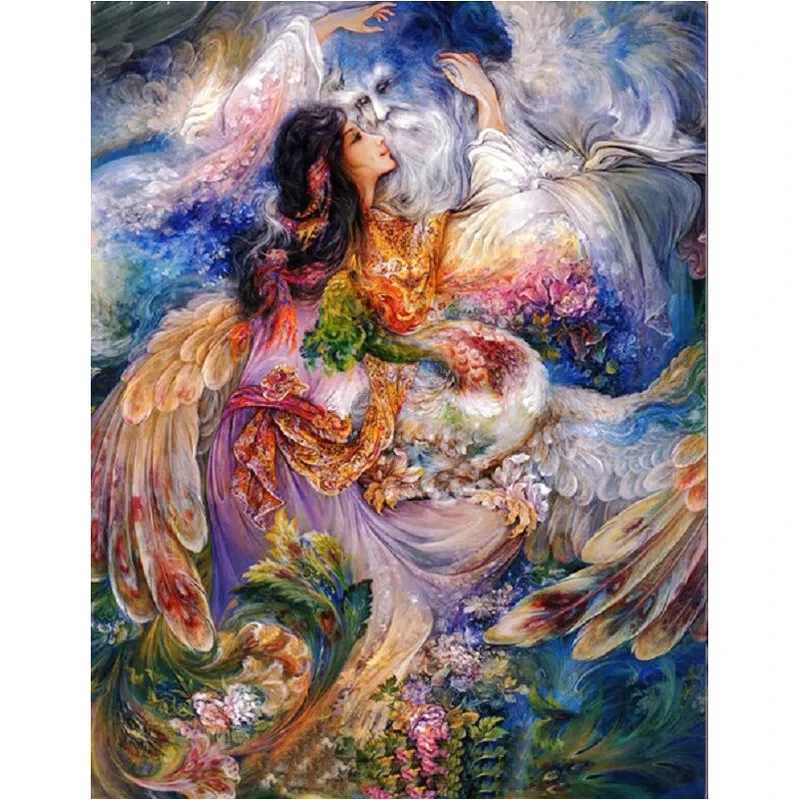 Алмазная живопись с фантазийным ангелом, картина 5D сделай сам с ангелом, полный квадрат, круглый камень, вышивка стразы, мозаика для украшения стен