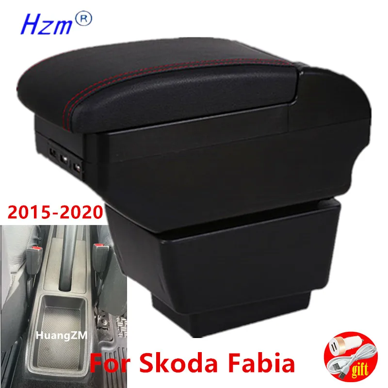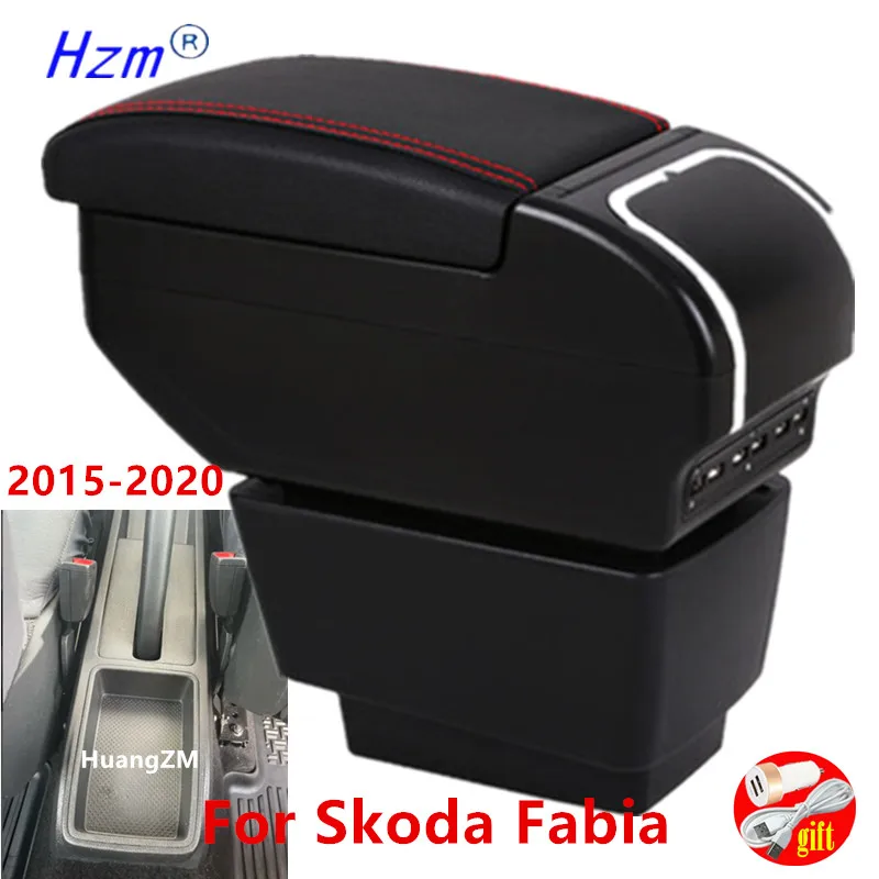 Для Skoda Fabia подлокотник центральной интерьера магазина хранения Авто-Стайлинг с USB 2015 2016 2017 2018 2019 2020