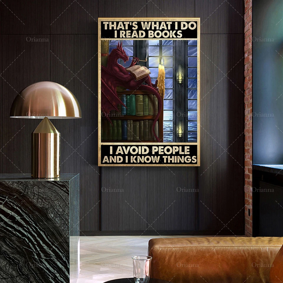 Вот что мне делать, я читаю книги, я предотвращаю людей и знаю вещи, постер с драконом для влюбленных, подарок для любителей книг, художественные принты для украшения стен
