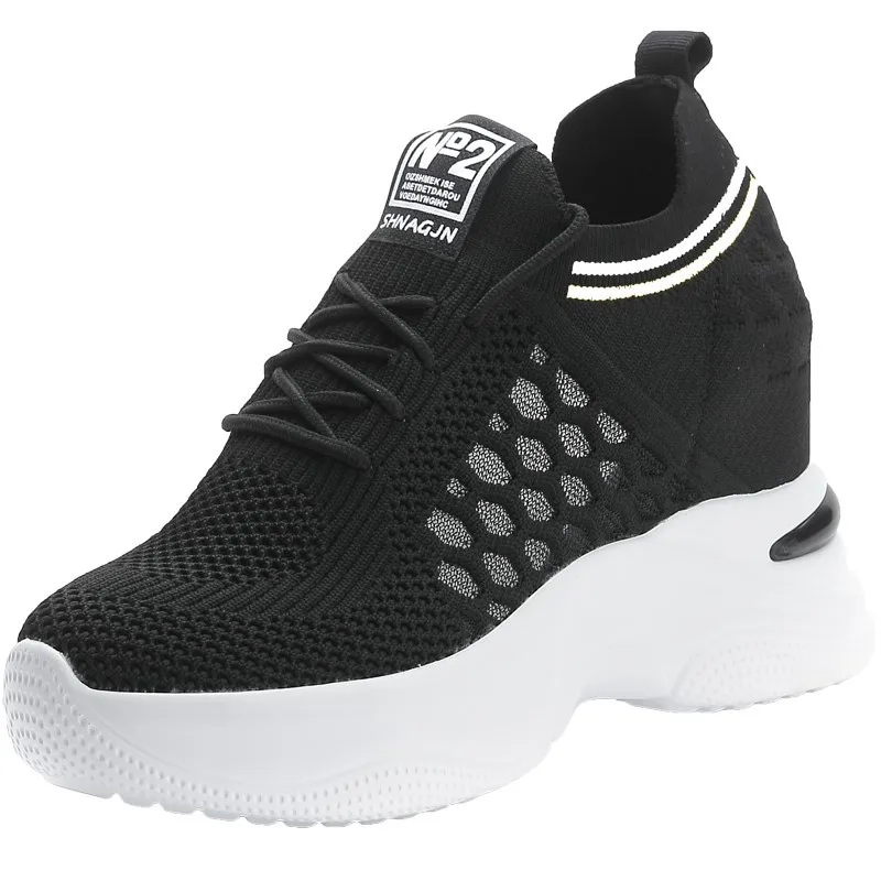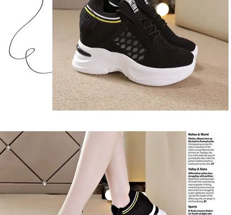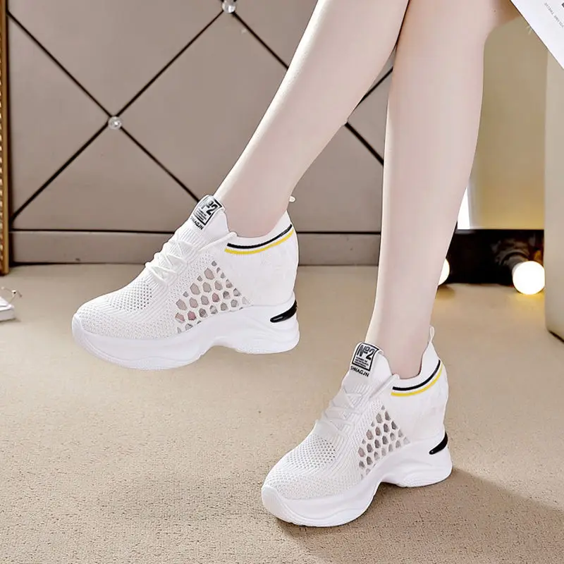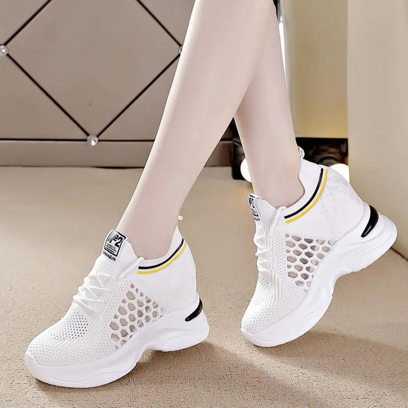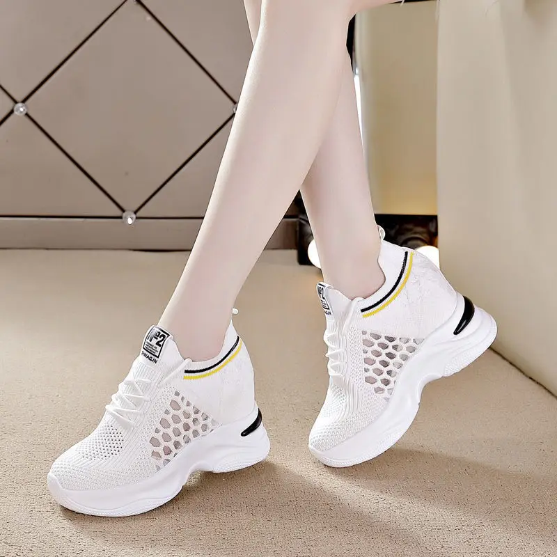 Белые туфли, увеличивающие рост; Женская летняя дышащая сетчатая повседневная спортивная обувь на толстой подошве и высоком каблуке; C703