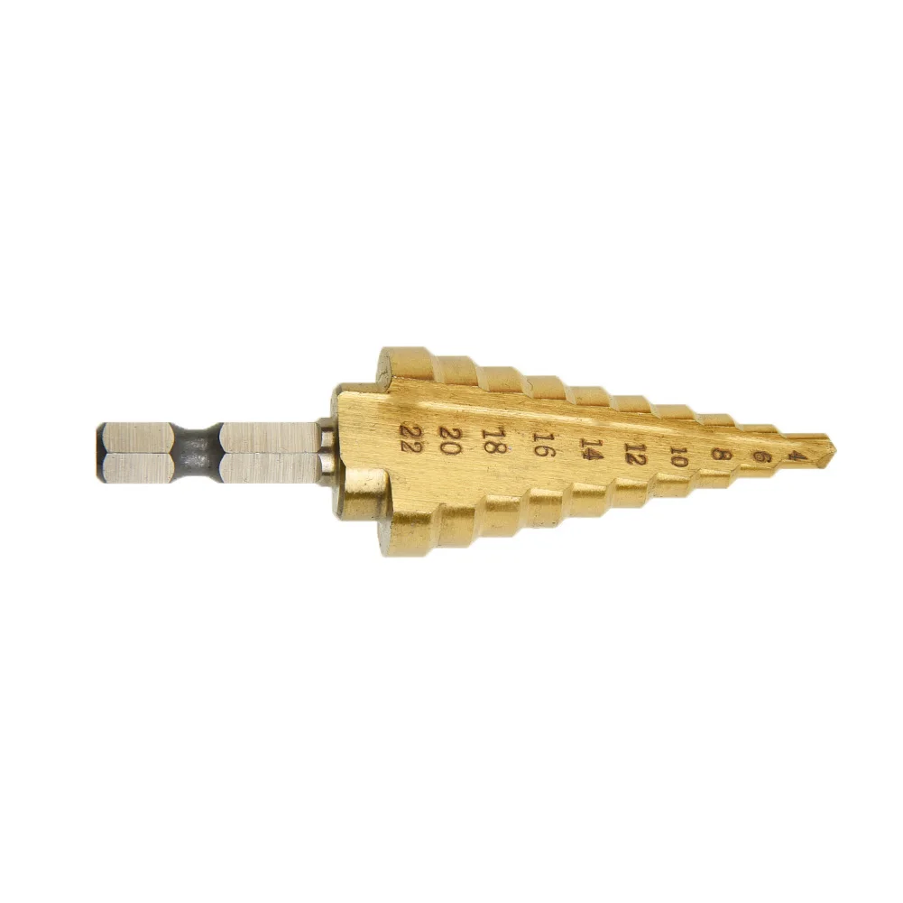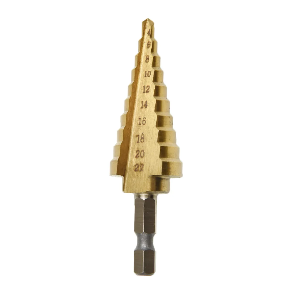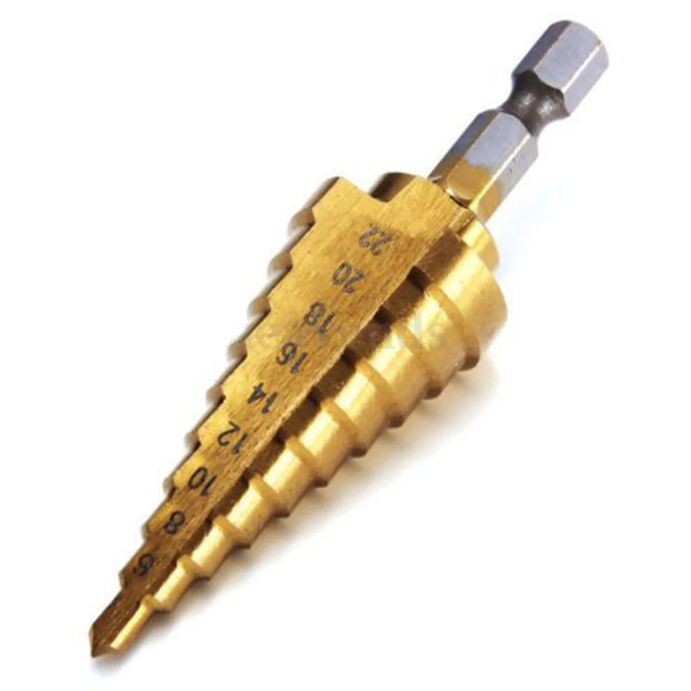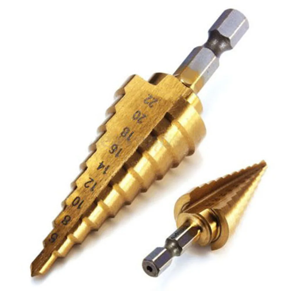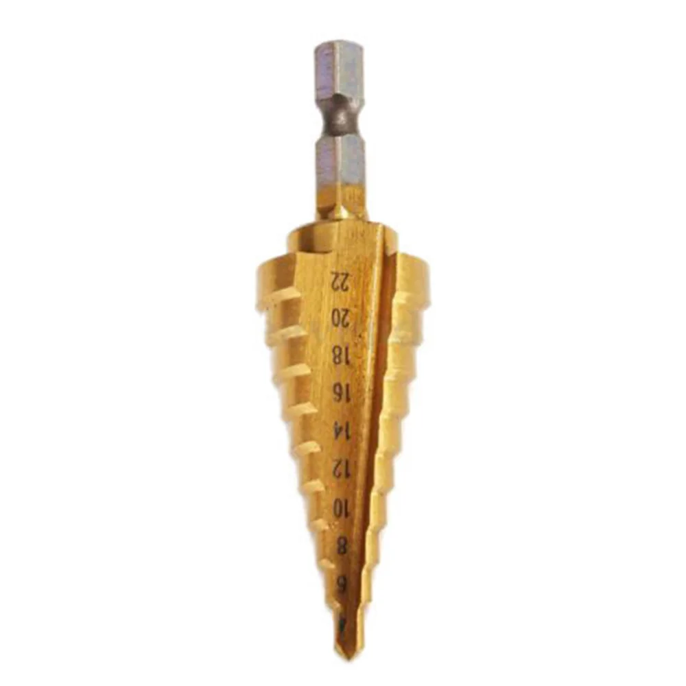 4-22 мм HSS Титан покрытием Шаг сверло дерево дыропробивной пресс конус бурения Мощность инструменты для обработки металла, высокая Скорость Сталь сверла